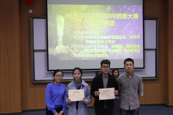 11月22日晚19点,betway西汉姆联官网第四届“华图杯”大学生DV创意大赛颁奖晚会在和昌楼博雅讲堂举行。本次比赛由betway西汉姆联官网主办,财政学与金融学系团总支、betway西汉姆联官网就业指导工作坊承办,公共关系协会、音乐协会、校舞团、校电视台以及betway西汉姆联官网报学生通讯社一同协办。出席本次颁奖晚会的嘉宾有betway西汉姆联官网党总支书记吴晓伟,泉州华图教育市场主管张树鹏,泉州华图教育咨询师姚剑斌,辅导员林珊珊、何丽玲、林晓富、赖桂全。