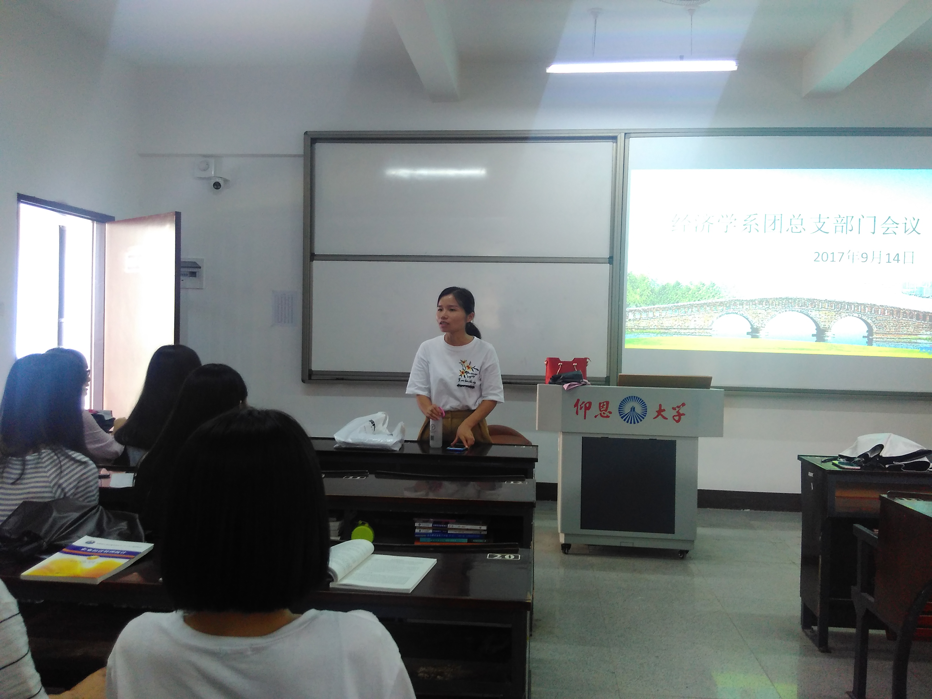 9月14日下午,betway西汉姆联官网经济学系团总支于仰恩楼B4-201室开展本学期第一次部门会议。betway西汉姆联官网经济学系团总支书记林丽华老师、第一副书记刘小玲、第二副书记洪莹莹以及各部门干部、干事参加了此次会议。