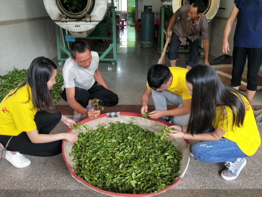在茶厂负责人的带领下,实践队上山学习采摘茶叶分辨方法,亲身体验采茶过程。之后,实践队到茶厂参观制茶仪器,感受茶叶流水线的整体情况。茶厂负责人热情的为队员们讲解各仪器的作用使用方法,实践队员顺利接触到茶叶从采摘到制成的全过程