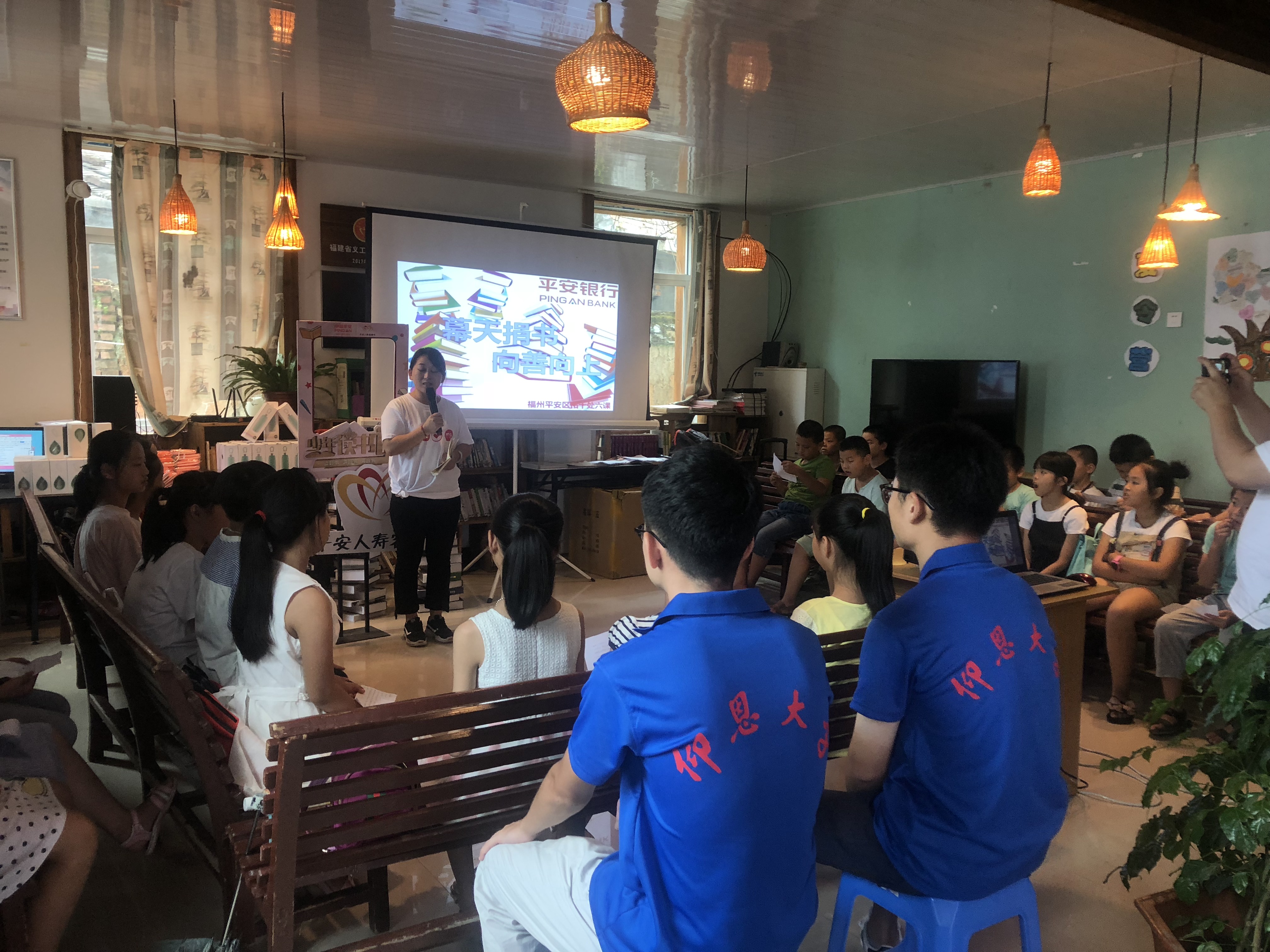7月18日,betway西汉姆联官网赴永泰嵩口飞虎实践队于嵩口古镇社区公益图书馆协同中国平安保险志愿者举行“少年图书说”活动。