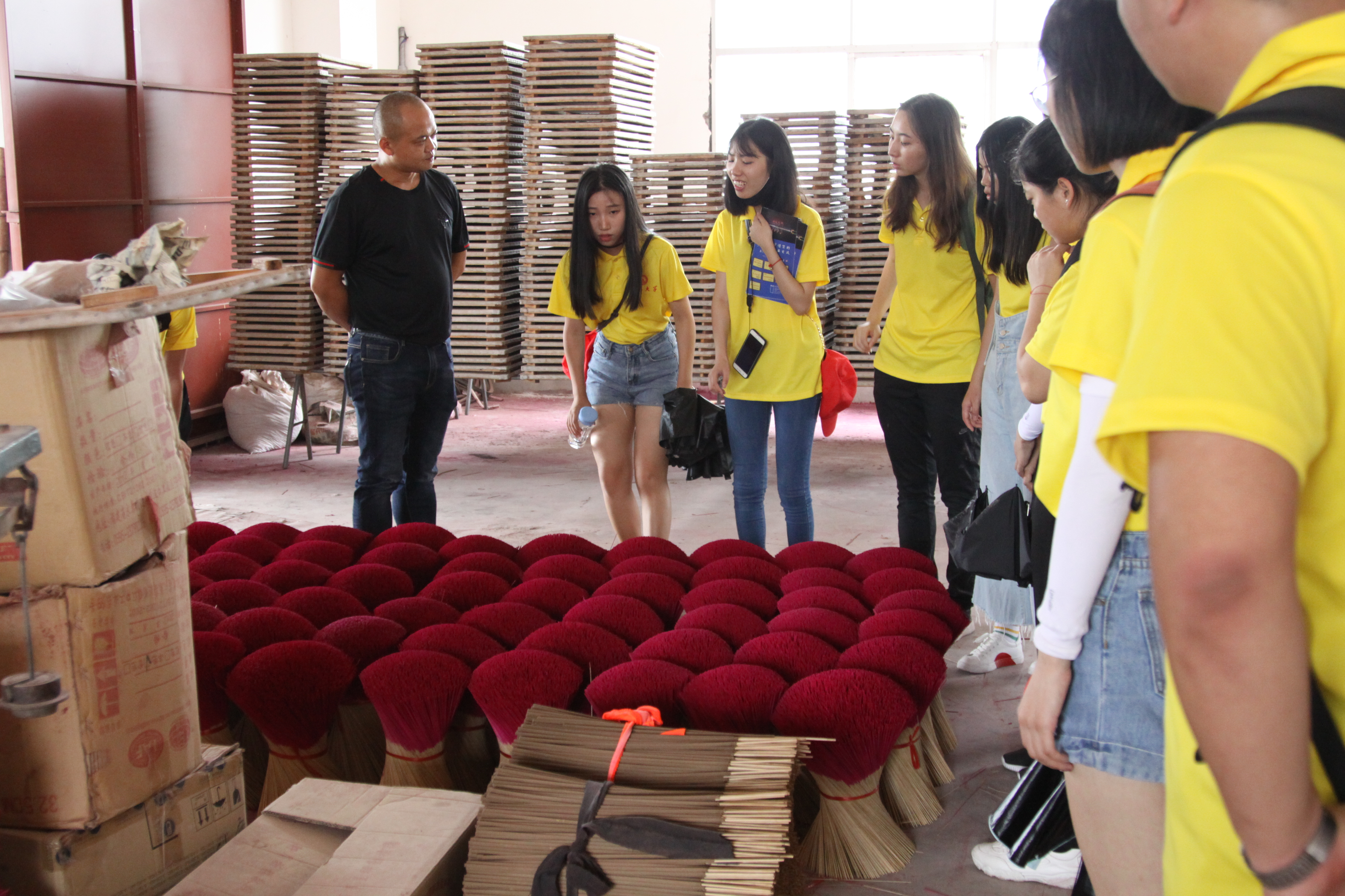 实践队员们也从中了解到,现有的香企业打破了原来传统手工制香,采用机器制香工艺,从而使制香的效率得到成百倍的提升。乡村振兴离不开人才支撑,但是,由于制香方面高素质人才匮乏,政府也对乡村振兴人才培养采取了一定的措施。《新香八条》的出台,正是为了吸引大批高素质人才为香企业的发展作出贡献,希望能够早日形成相对成熟的流水线。此后,林总还亲自带领实践队员们参观制香工厂,亲手展示制香工艺。