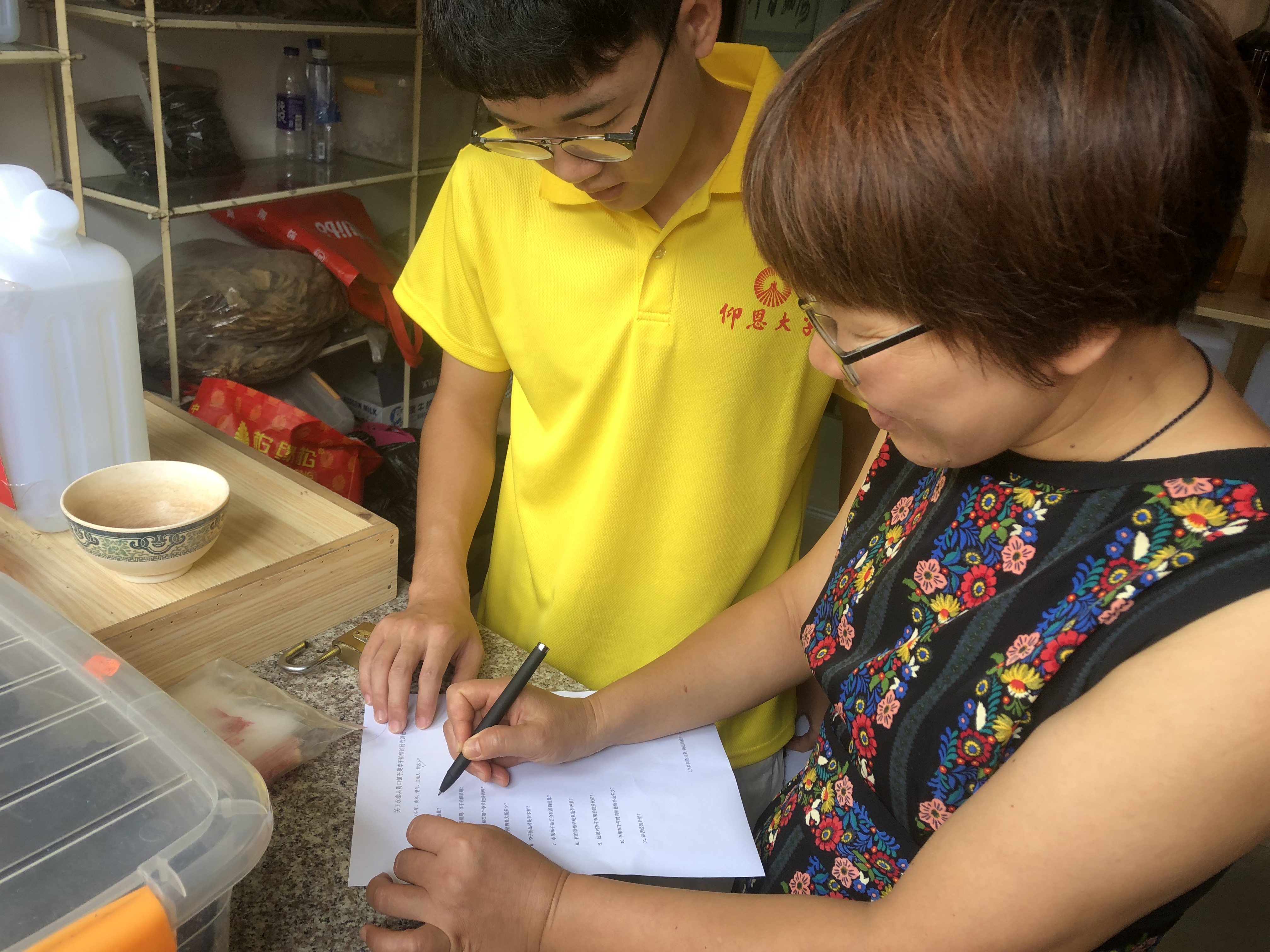 图为当地居民为实践队员填写问卷调查