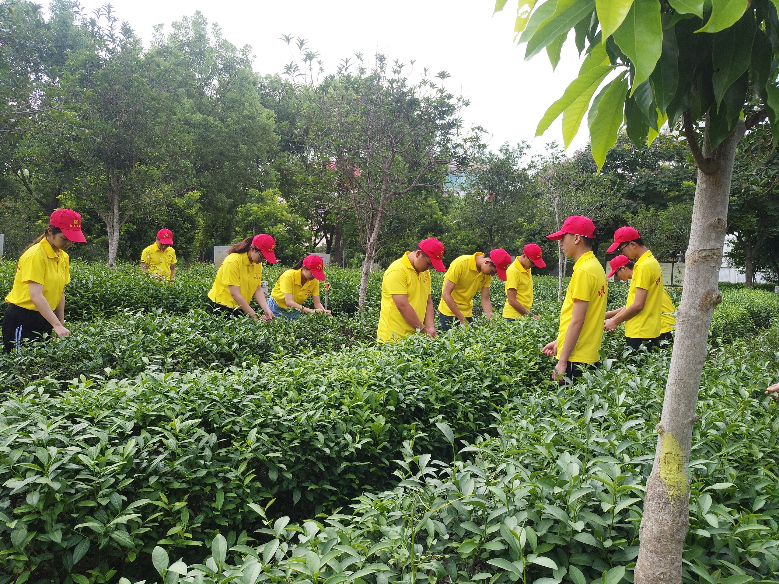 在参观期间,讲解员首先介绍了有关八马茶业的由来和发展规模,向实践队员们普及了安溪茶的四大花旦,分别为“铁观音”“本山”“毛蟹”“黄金桂”。随后,实践队来到百茶园,实践队员们被茶香四溢的百种茶叶所吸引,亲自体验采摘茶叶。在制作工坊,实践队员们了解了茶叶制作的八大流程:采青、晒青、摇青、摊青、炒青、包揉、烘干以及品茶,并尝试了流程的实际操作,实际队员表示收益匪浅。