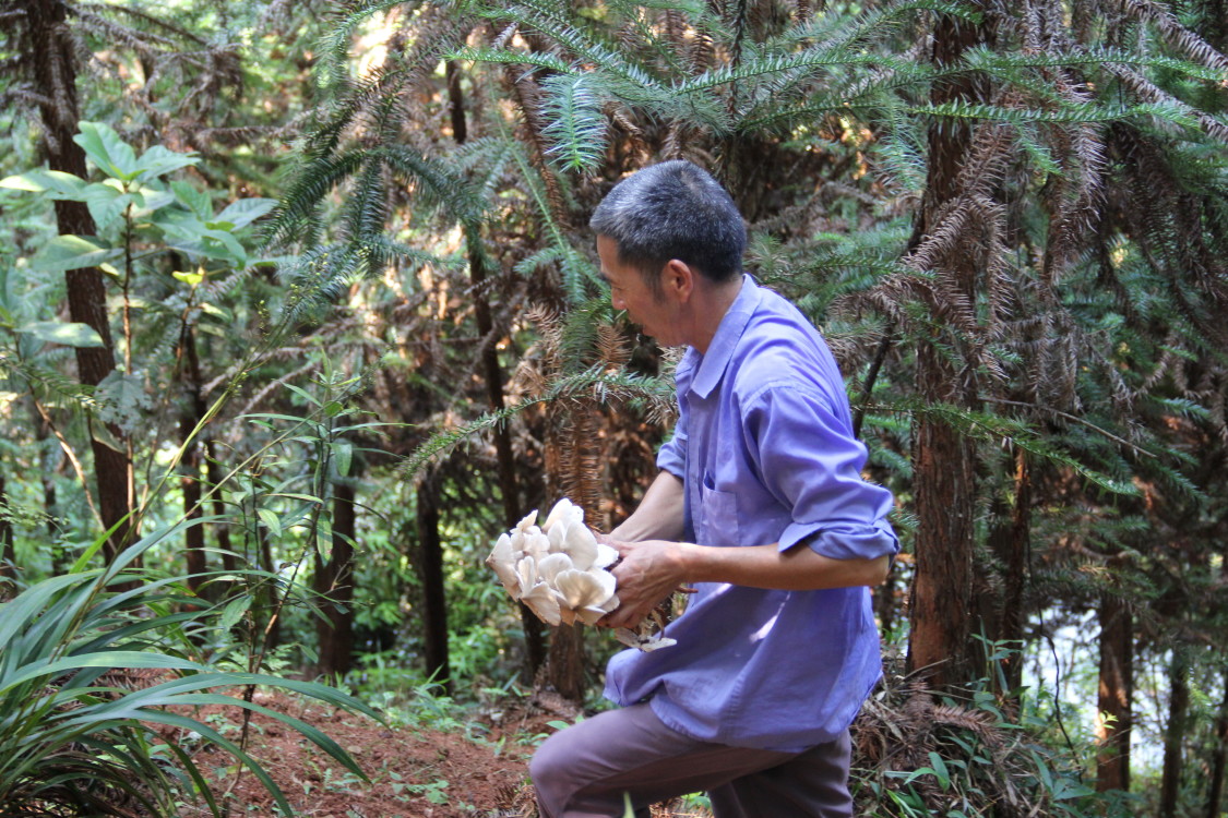 实践队来到上赤村最大的合家欢家庭农场进行调研,据农场主张寿福介绍,该农场与乡政府进行良性的合作,以传帮带的方式,建立以梁野白兔为中心,家庭农场为载体的激励性扶贫机制。据悉,中赤乡党委和政府出资将通往农场的道路进行硬化,并建立平台及政策支持,农场主张寿福为当地贫困户提供免费技术、苗种,同时聘请贫困户在农场务工,从而达到合作双赢。张寿福介绍到,目前本村扶贫项目主要是竞争性扶贫梁野白兔养殖项目及林下经济。农场目前拥有500只左右梁野兔,产量较大,产速较快,平均每两个月生产一窝,一窝平均七到八只。目前村里所有贫困户的兔种都来源于合家欢农场。随后,张寿福又带领实践队来到发展林下经济的农场进行草药、菌等各类绿色产品的调研。张寿福自豪的说,狭叶叉柱花草药目前主要在上赤村,具有良好的经济价值和营养价值,是一种较为珍贵的药材,发展林下经济的同时用于扶贫项目,贫困户通过入股管理获得利益,从而实现脱贫。