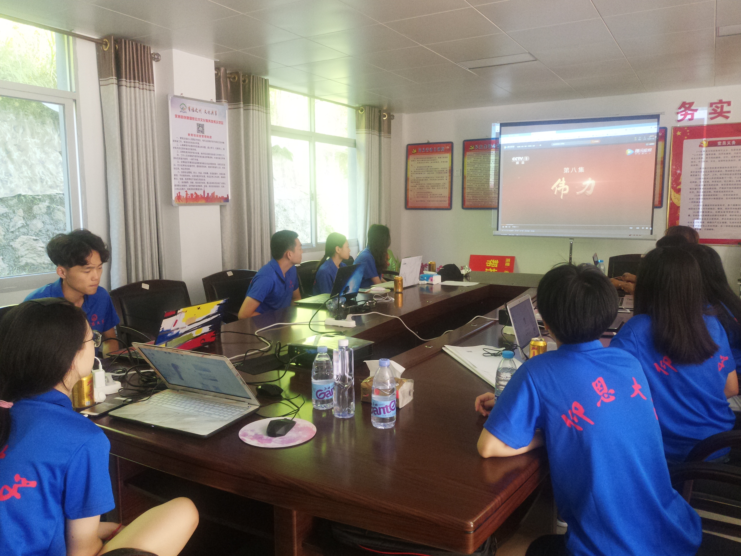 实践队队员在驻村书记郑福晨的组织下,前往寨下村服务中心会议室观看纪录片《强军》。片中鲜明提出党在新形势下的强军目标,带领人民军队重整行装再出发,在中国特色强军之路上迈出坚实步伐。片中生动反映习主席领航强军兴军、锻造世界一流军队的韬略实践。鼓舞实践队队员更加紧密团结在以习近平同志为核心的党中央周围,不忘初心、不懈奋斗。