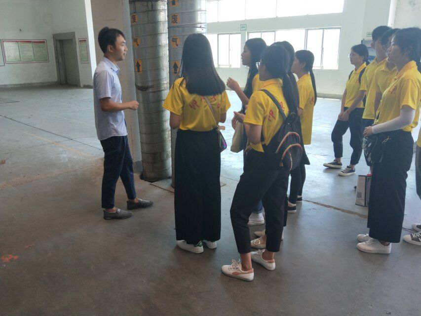 (图为实践队员在陈洪主管的带领下参观生产车间)