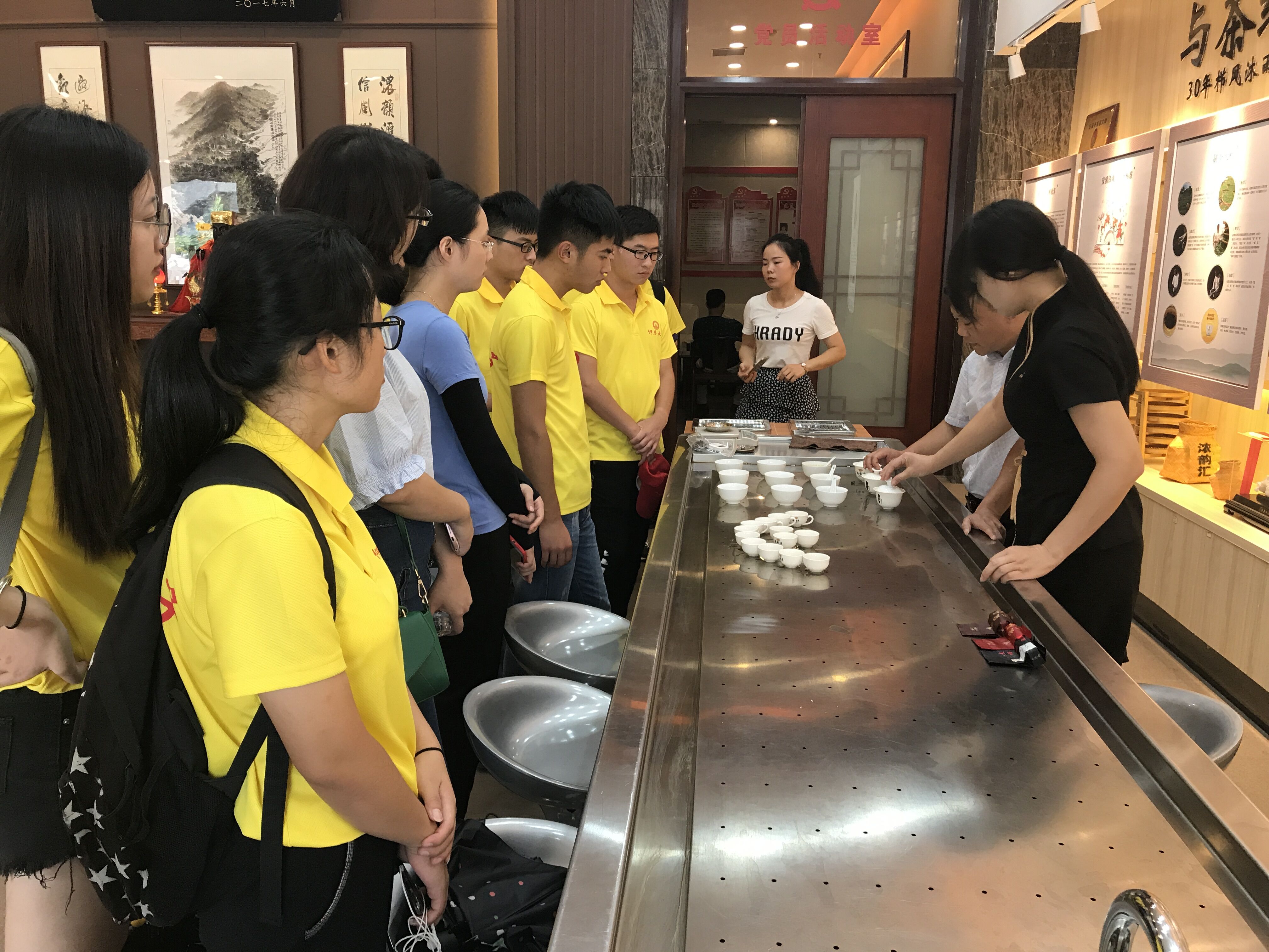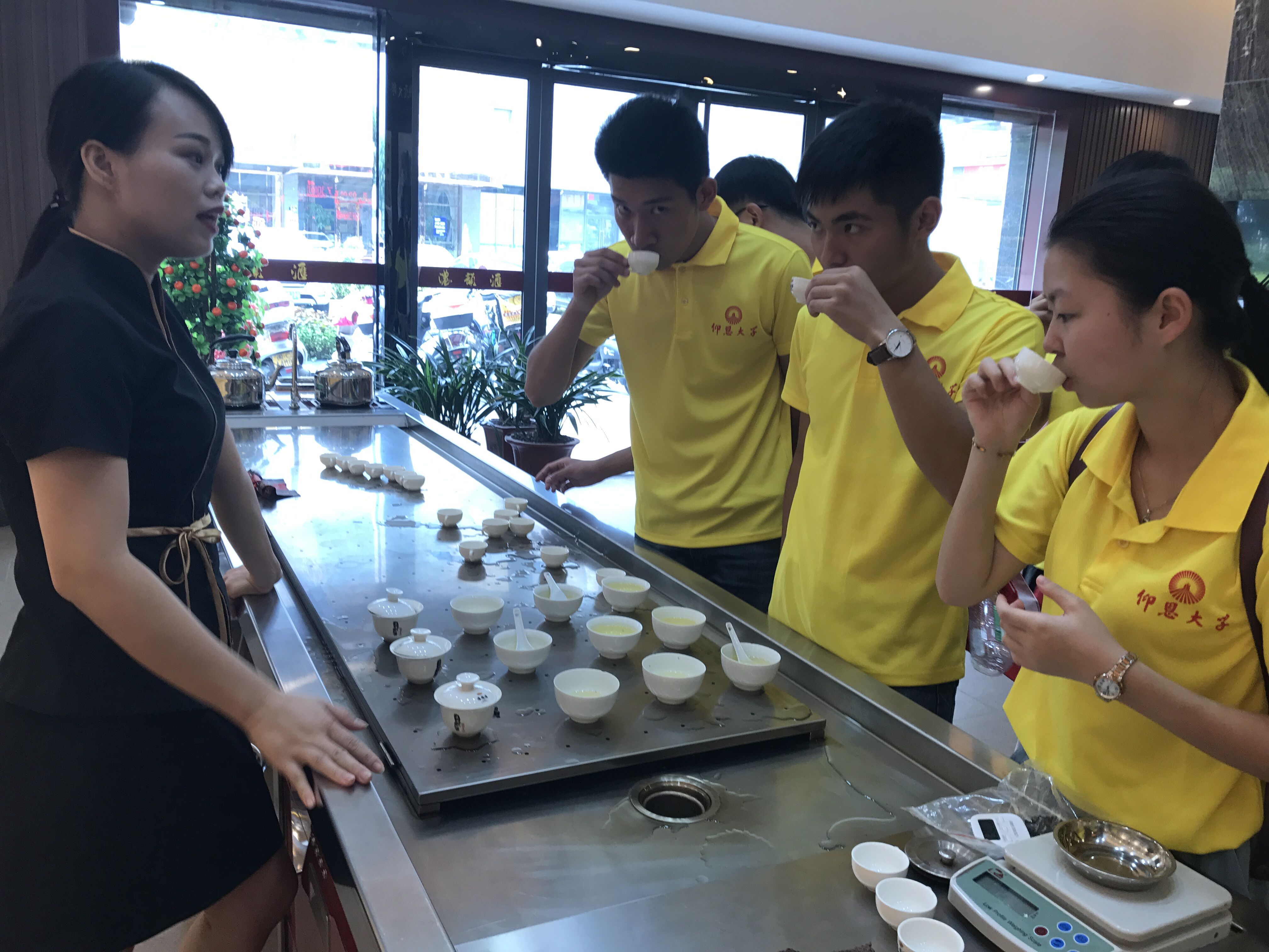 在调研期间,温文溪大师为实践队员上了一堂生动有趣的铁观音基础知识课,让队员们对铁观音的由来到制茶的各个环节有了全面的了解,随后,温文溪大师为实践队员现场展示了铁观音的清茶、浓茶和陈茶三种不同品种的区别,队员们边品尝三种不同茶汤边听温文溪做讲解,对铁观音有了更为直观的认识,紧接着实践队前往了首届铁观音大师赛冠军王清海大师的工作室。在这里,王清海大师为我们介绍了铁观音的制作工艺,并且详细述说了安溪铁观音比赛的精彩之处和激烈过程,同时王清海与队员们分享了自己多年来从事茶产业的感想,他认为传统的制茶工艺不能够被抛弃,茶人匠心应该是作为一个制茶人应该坚守的,铁观音产业的发展不能够是单打独斗而应该是抱团共同发展,如此才能够促进安溪茶产业的二次腾飞。