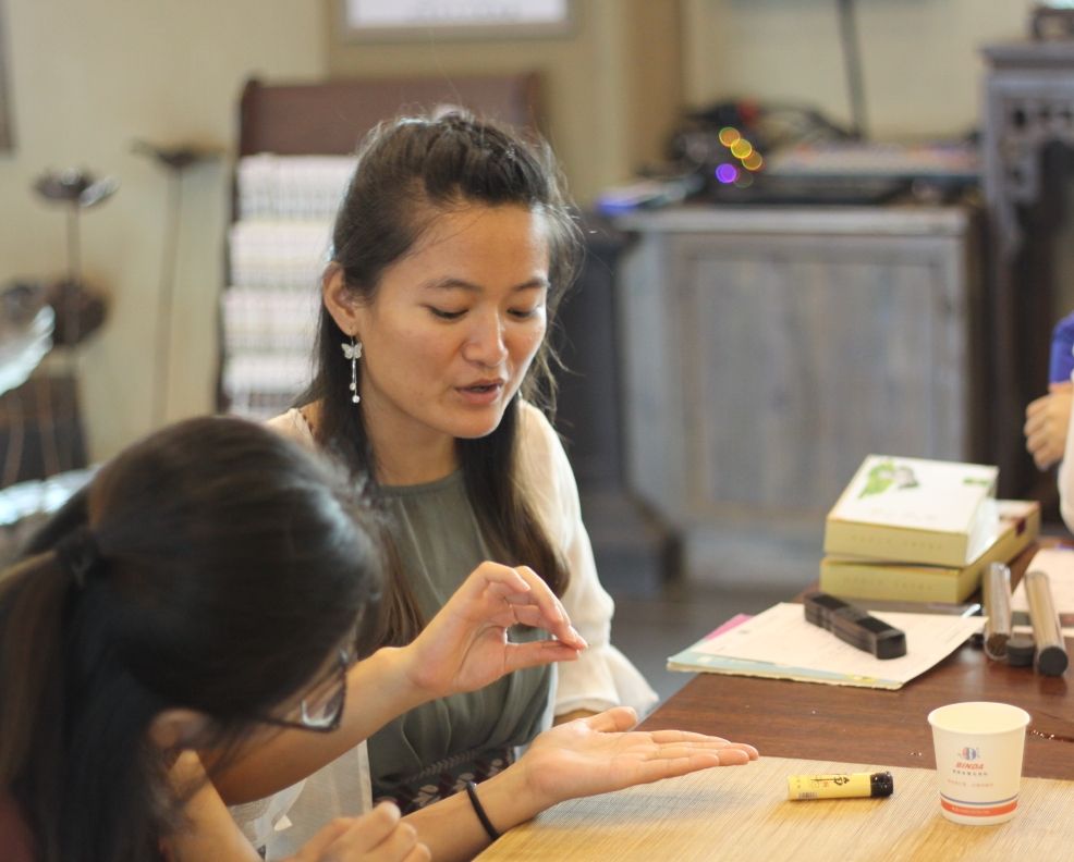 (图为彬达公司文化创意园总监曾少芳小姐分享留学经历)