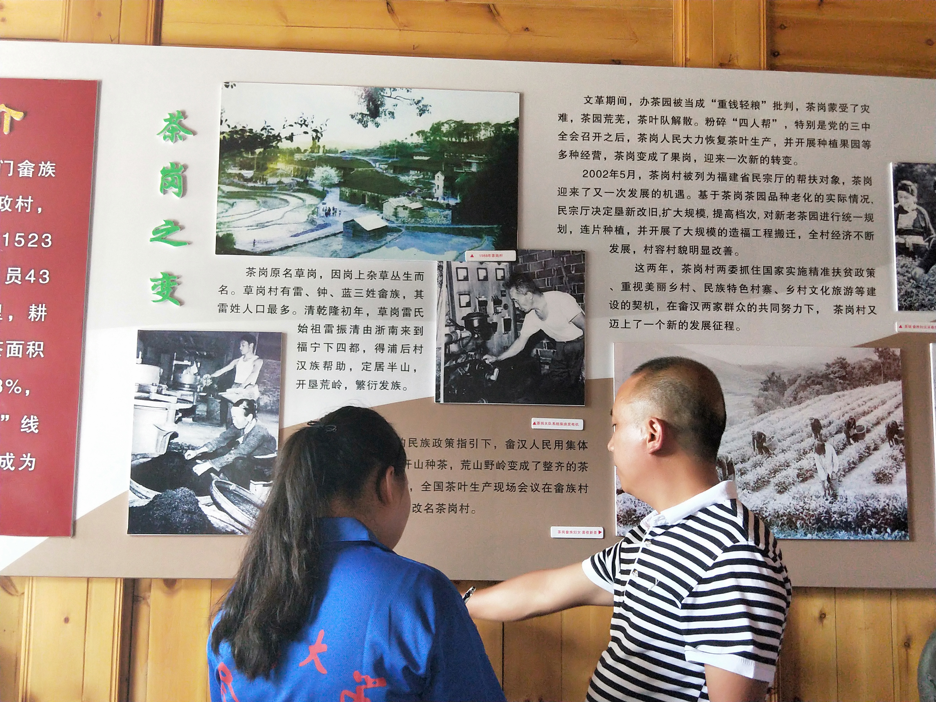 实践队队员与霞浦团县委副书记雷健、茶岗村支部书记林宏耀、雷新众参会。主要了解了茶岗的村情、基层党建工作、特色村寨工作、互联网+茶岗以及精准扶贫工作五个部分的内容。据悉茶岗村是重点发展农业特色产业,逐步摆脱了贫困,走上了一条“生态立村,产业强村”的道路,正朝着“生态美,百姓富”的民族特色村寨前进。