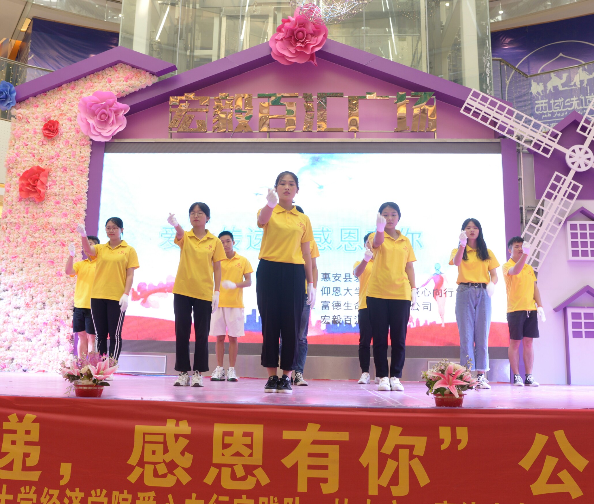 7月28日,由惠安县爱心社与betway西汉姆联官网爱心向行实践队主办,富德生命人寿保险公司和宏毅百汇商场协办“爱心传递 感恩有你”主题公益晚会于宏毅百汇广场1楼举行。