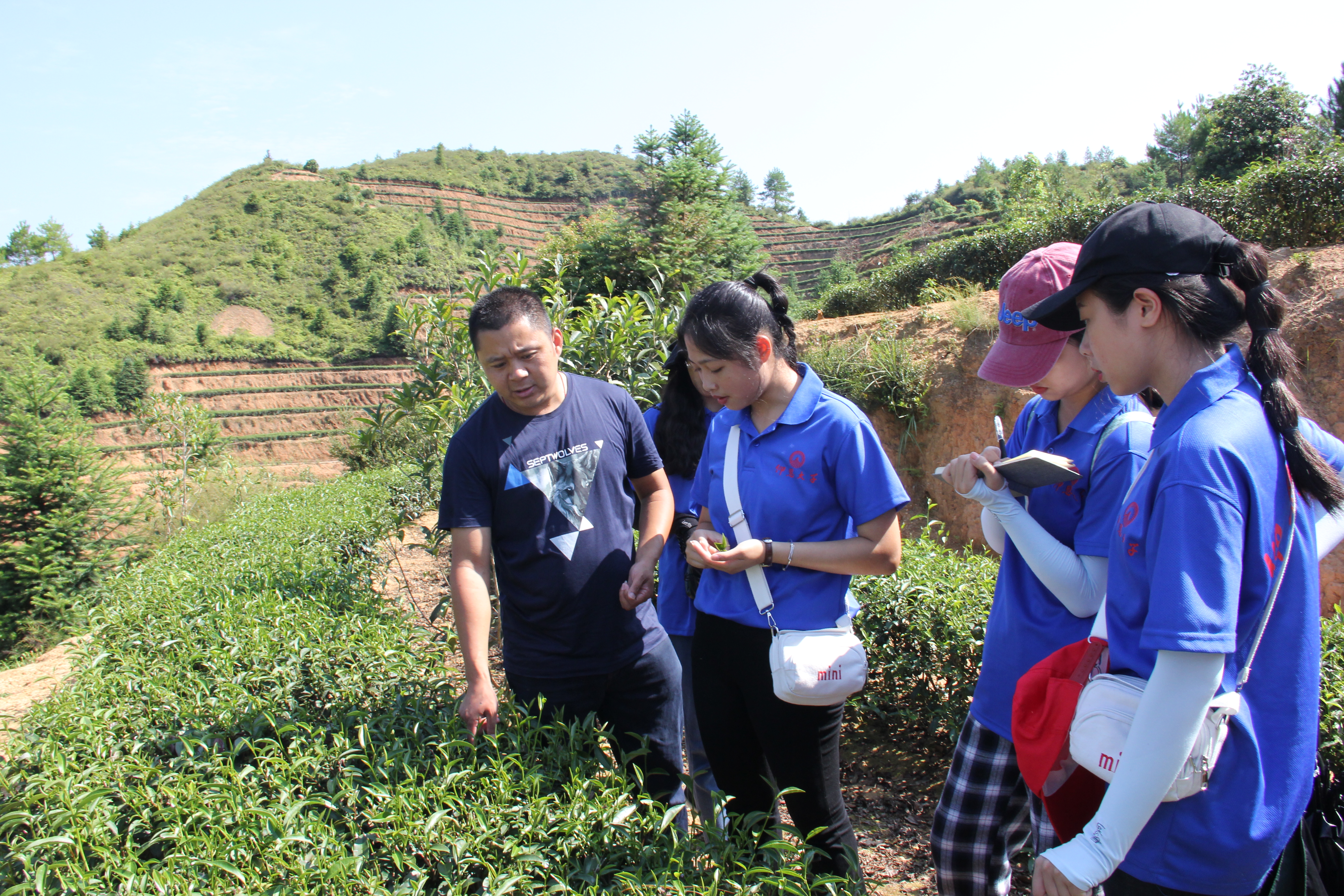 书记兰正盛带领实践队员走进桃溪镇激励性扶贫项目茶叶种植基地,与实践队员们介绍了相关的茶叶种类及其规模和产量。据悉,该农场作为激励性扶贫项目,实行贫困户激励性集中种植管护茶叶,镇政府在中央财政扶贫资金中出资向公司租赁茶园及种植好茶树,免费提供给参与激励性扶贫的贫困户种植管护并收益,公司负责对贫困户提供技术指导和稍高于市场价收购茶青等帮扶,同时根据管理效果进行一定的奖励与补贴,以“传帮带”的方式做到“真脱贫、脱真贫”,从而推进“乡村振兴”。