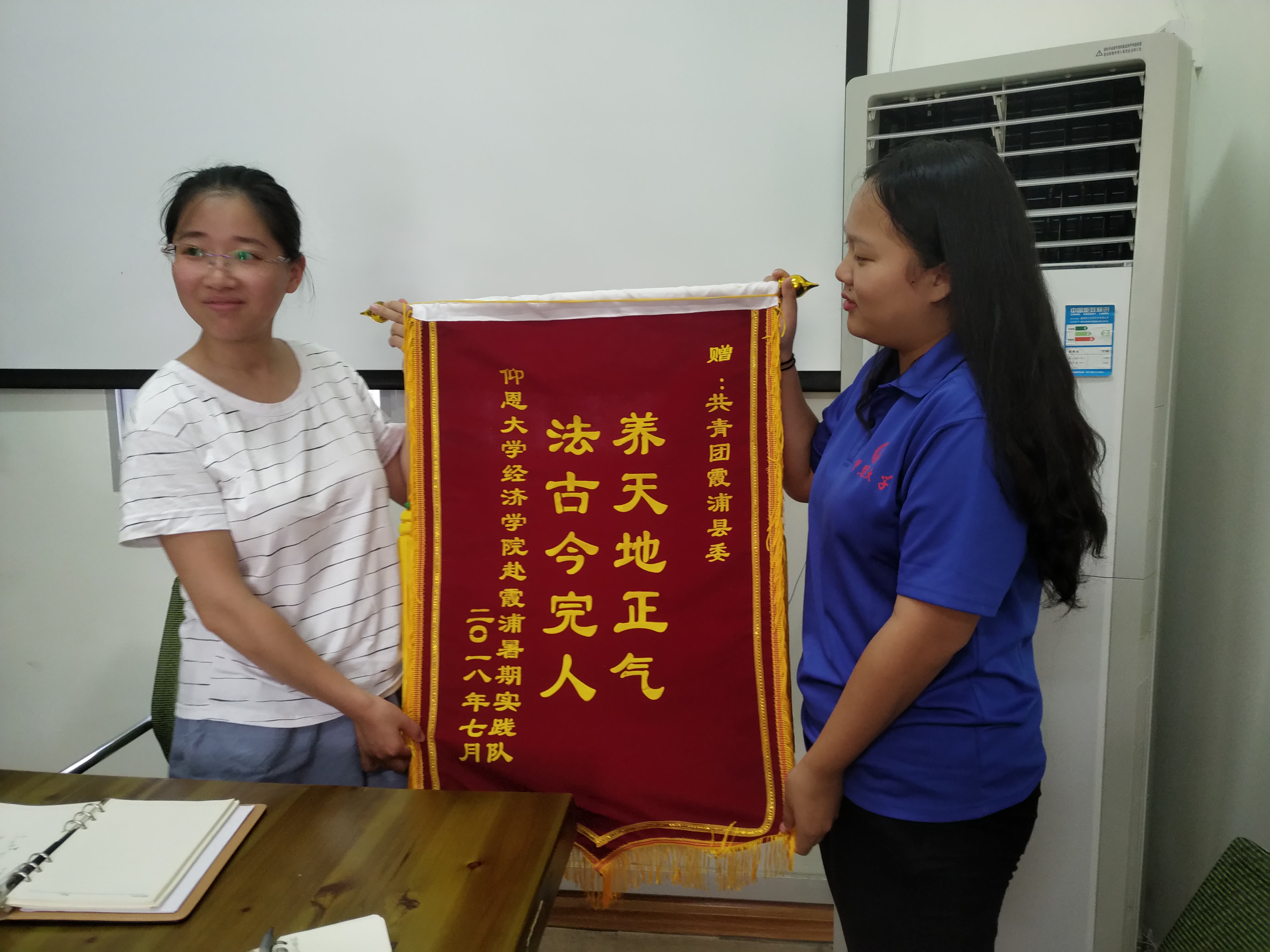 实践队首先前往霞浦县团委,书记雷宇和副书记许晨丹热情的接待了实践队队员,实践队队员分享了这14天以来的历程与收获,同时,书记雷宇、副书记许晨丹也对实践队给予了赞赏以及给出了个人的建议。随后,实践队队员与归国华侨联合会负责人黄玉琴进行交流,同时也会为实践队提出了实在性的建议。实践队也为两个接收地送上了锦旗,感谢这些天为实践队的帮助与指导。
