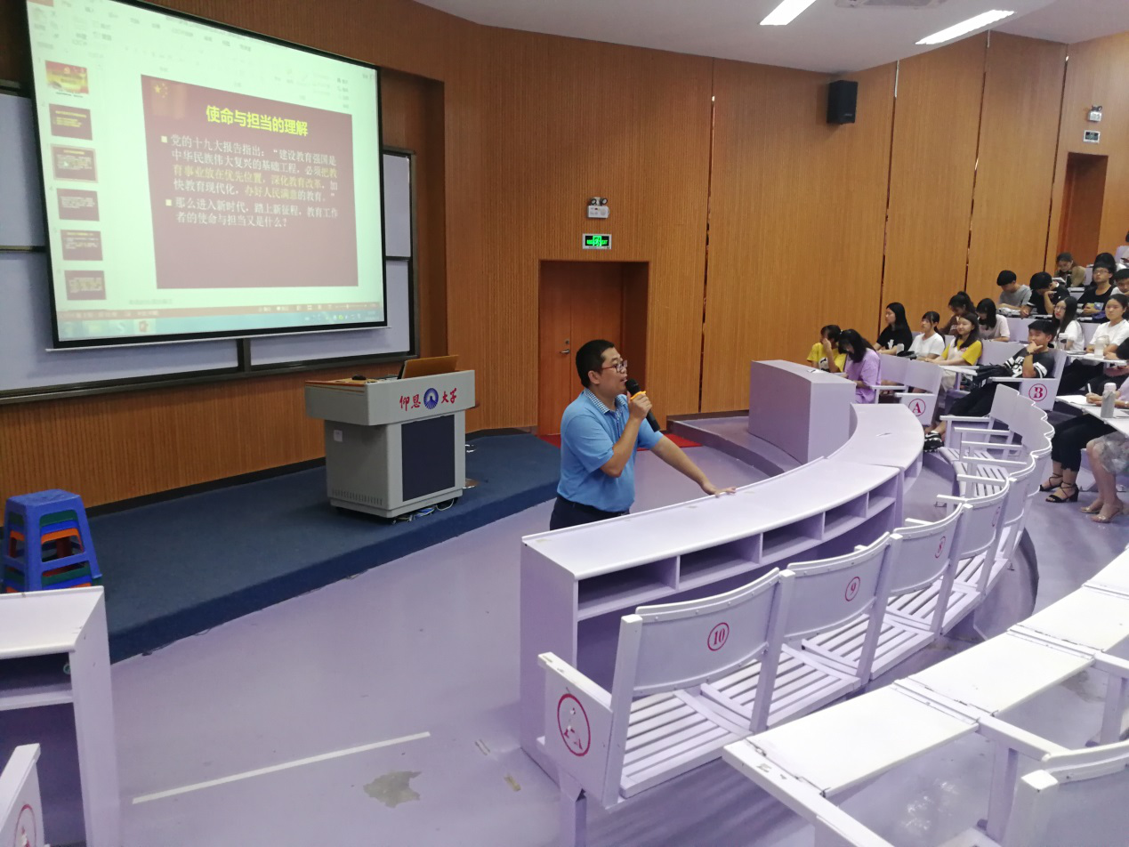 为进一步扎实推进我院学生深入学习贯彻宣传党的十九大精神、习近平新时代中国特色社会主义思想,9月26日下午3点,betway西汉姆联官网党总支书记吴晓伟老师于新区和昌楼博雅讲堂深入展开《新时代教育工作的使命担当》专题党课宣讲。betway西汉姆联官网各支部全体党员和积极分子参加本次宣讲会。
