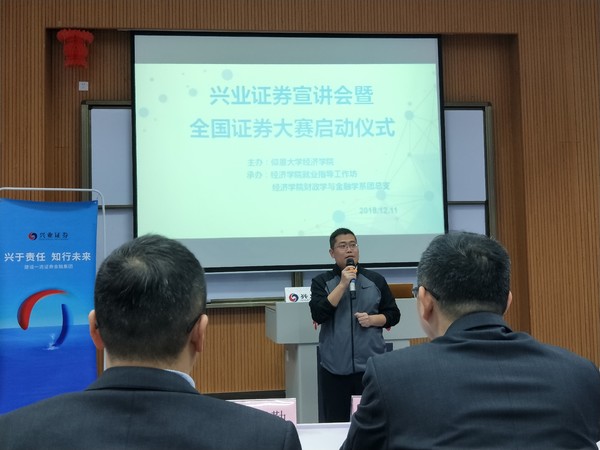 在活动开始时,企业讲师殷金杰采用PPT展示的形式,结合自身经历为同学们讲述当前就业形势、行业发展趋势、企业的薪资福利以及岗位招聘要求等方面,并现场给同学们答疑解惑,让同学们充分了解企业信息。随后,在启动仪式上,企业讲师殷金杰介绍全国投资大赛的内容并强调了大赛的注意事项,呼吁同学们踊跃参赛。宣讲会结束后,兴业证券的工作人员对现场有意愿求职的同学进行面试谈话。