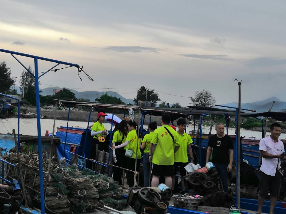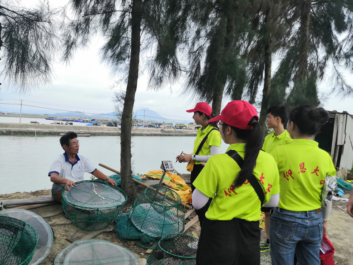 邱城村以海产著名,其中青蟹是邱城村主要海产。在邱城村村干部的带领下,实践队成员们参观了港口、海产养殖场、氧气池场等地,了解到邱城村船只维修年限、海产养殖情况、海产保鲜的方法。