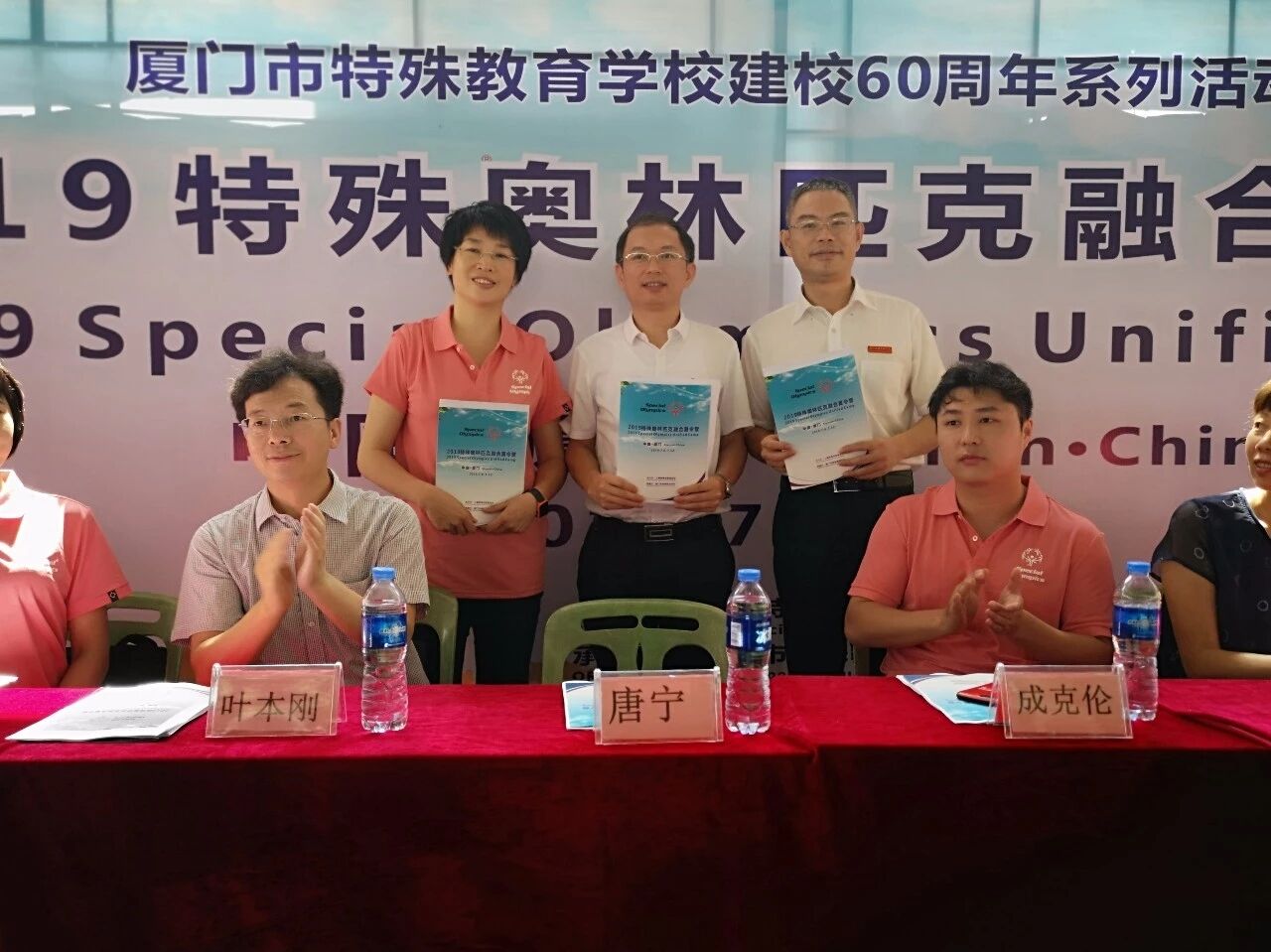 7月8日星期一,betway西汉姆联官网papazao实践队前往厦门城市职业学校参加了由上海特殊关爱基金会主办、厦门市特殊教育学校承办的“特殊奥林匹克融合夏令营”的开营仪式与初次训练。