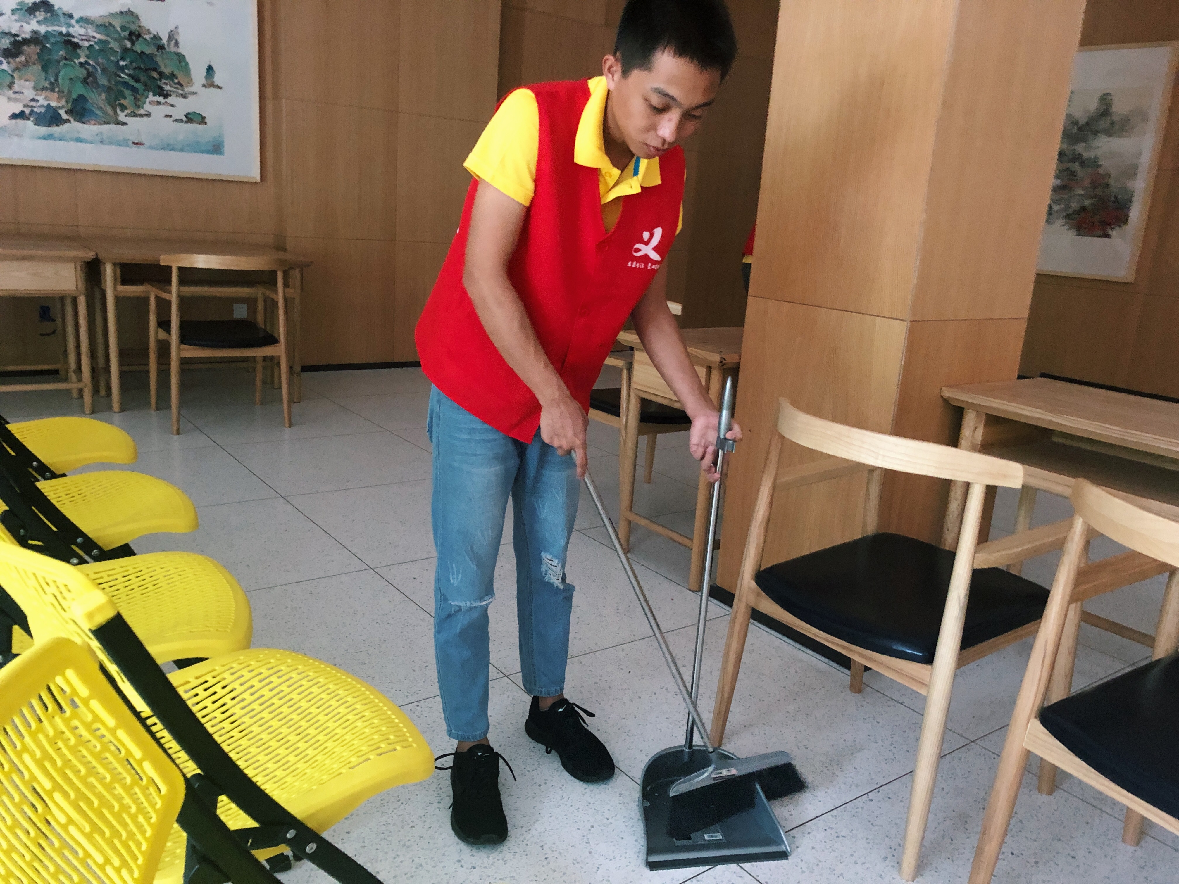 在金榜书院负责人林美华和叶丽香的带领下队员们拿着各种清扫工具在金榜公园集合,接着进行了一系列的打扫工作。此次打扫的地点在书院二楼露天区旁的待客室的整理。在活动过程中,队员们带着热情,认真仔细地清理窗台、书架以及地板,展现了斗志昂扬的良好精神面貌。虽然打扫过程持续的时间不长,但是也取得了非常好的效果。