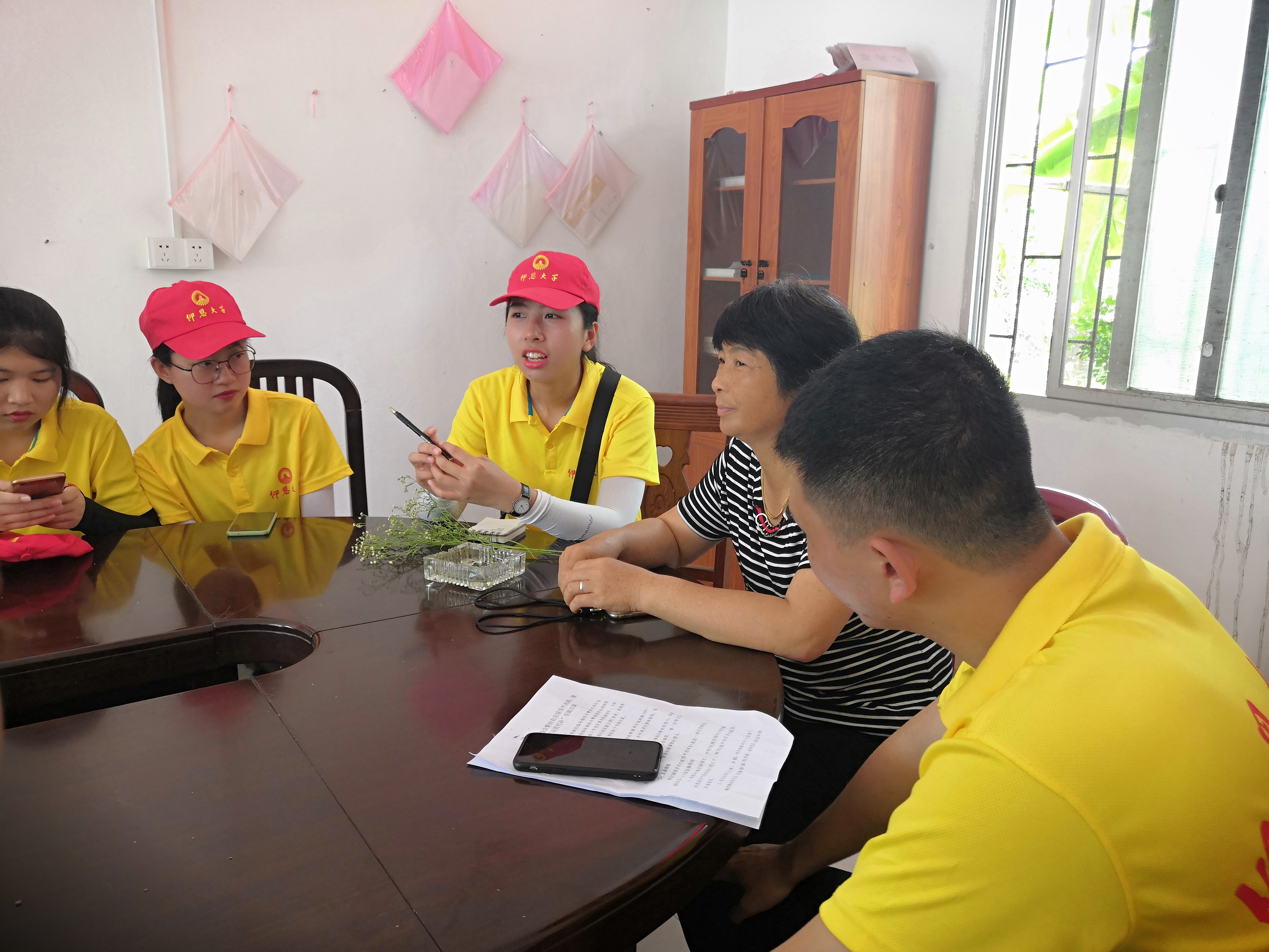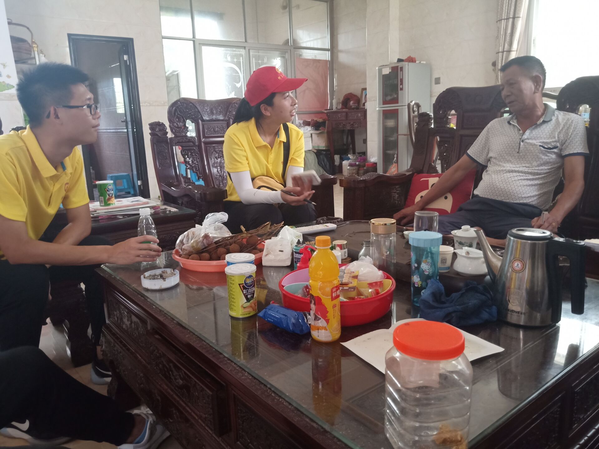 图3:实践队与村干部交流讨论 为深入了解湖内村的经济发展概况,实践队前往种植大户沈朝文家中进行调查。曾获得“富硒大米第一人”等荣誉称号的沈朝文先生,向实践队讲解了个体农业的发展历程,并耐心回答成员们提出的疑问。活动结束前,全体成员向参与本次调研的人们表示感谢,并同他们合影留念。