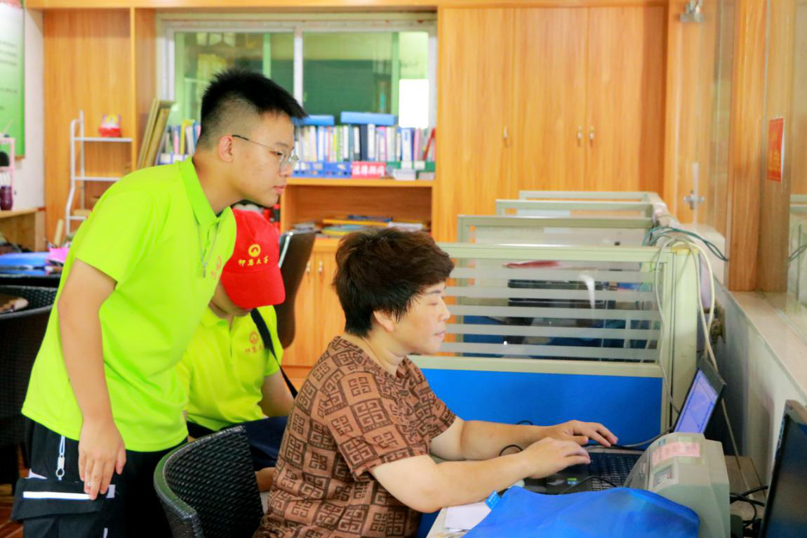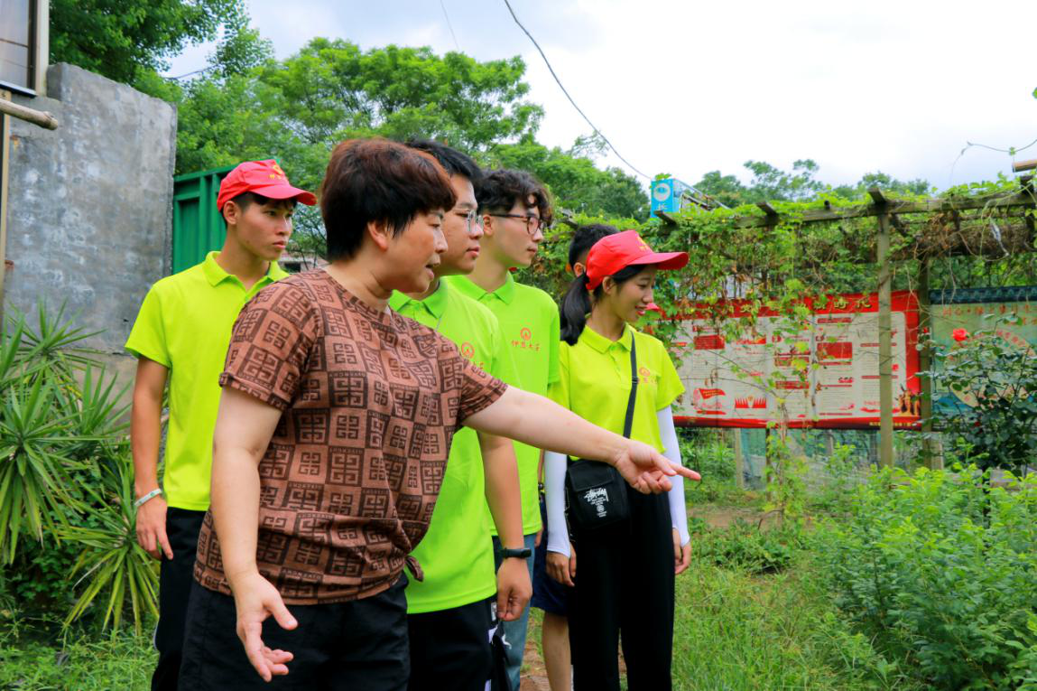 (图为参观电商中心) 在农场主易小贞的带领下,实践队队员参观了园区内的园林绿化工程部、农产品特产和花卉展销厅、农村电子商务服务区和花木盆栽观光区。