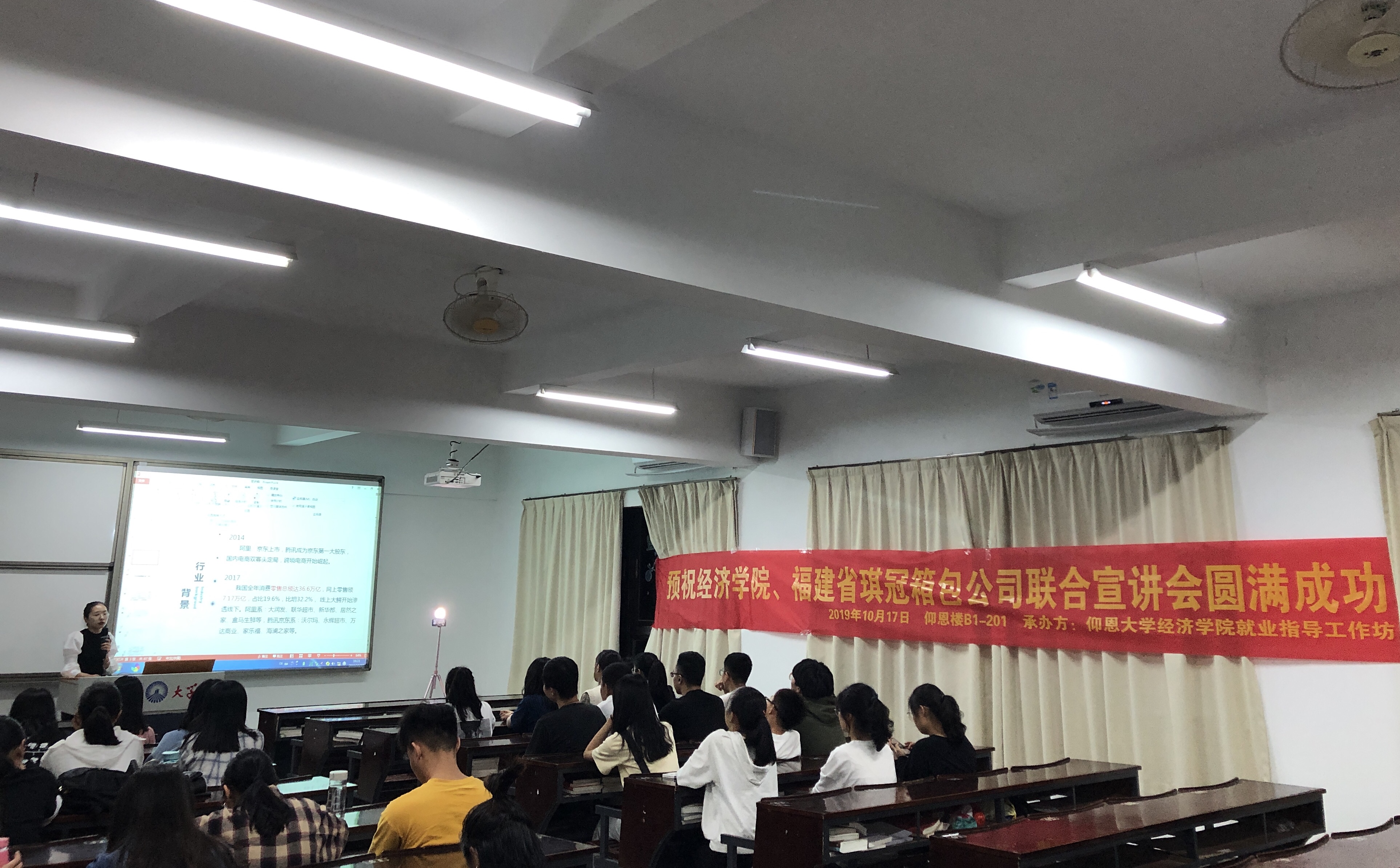 10月18日晚上七点betway西汉姆联官网于仰恩楼B1-201成功举办了泉州琪冠箱包有限公司宣讲会。此次讲座就业指导工作坊邀请到了泉州琪冠箱包有限公司的Kiki老师进行分享。