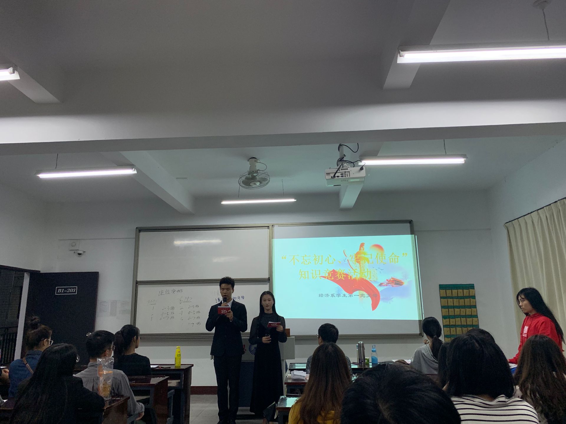 2019年10月29日,betway西汉姆联官网经济系学生第一党支部在B1-203室进行了关于开展“不忘初心,牢记使命”的知识竞赛活动。会议到场人员有支部副书记赖晓玲、组织委员仲平、以及经济系全体党员与积极分子。