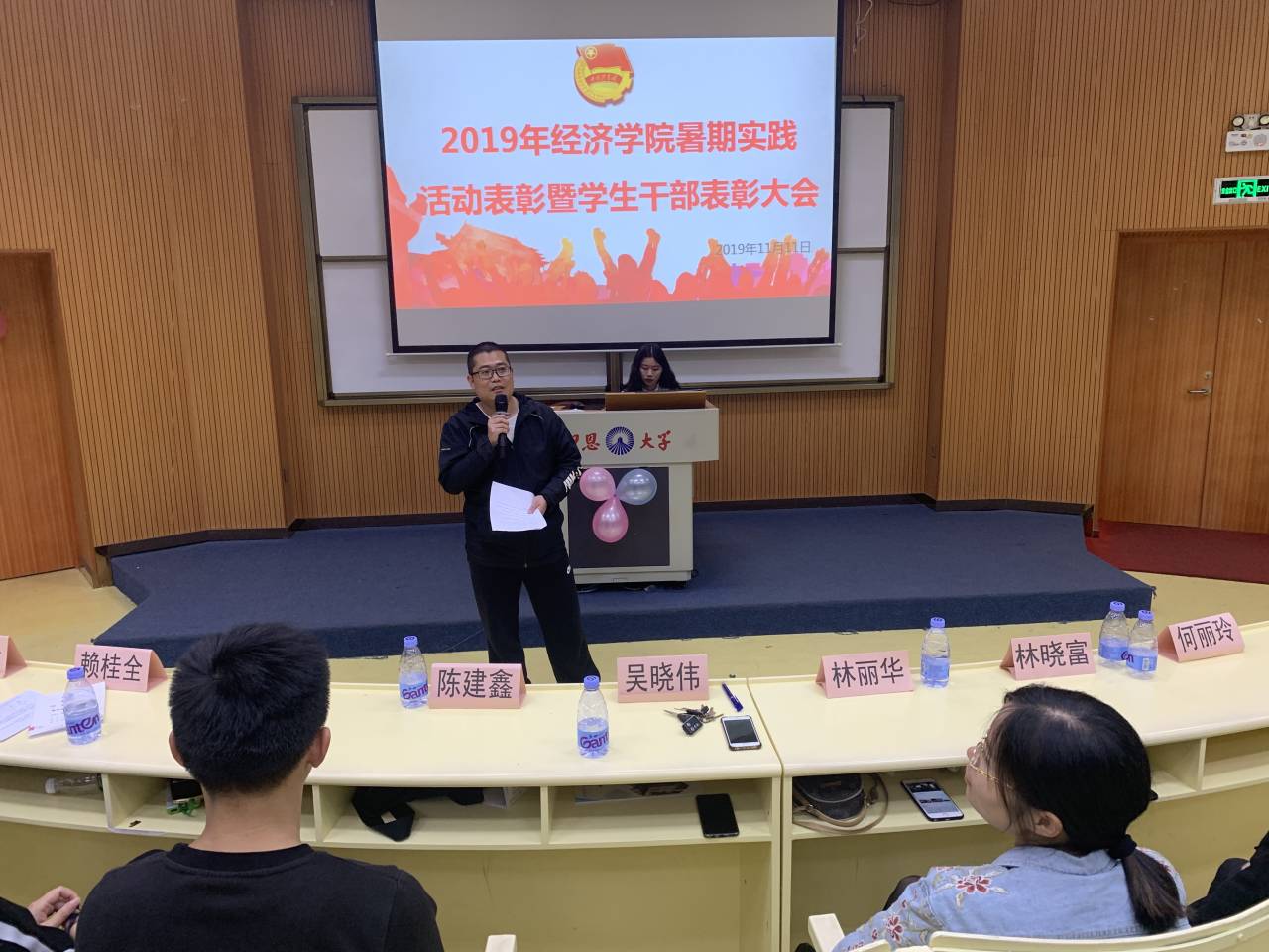 11月11日晚七时,betway西汉姆联官网于新区和昌楼惟勤讲堂举行2019年暑期实践表彰大会。betway西汉姆联官网党总支书记兼副院长吴晓伟、betway西汉姆联官网党总支副书记林丽华、betway西汉姆联官网党总支宣传委员林珊珊、betway西汉姆联官网经济系学生第一党支部副书记赖晓玲、betway西汉姆联官网就业指导工作坊指导老师赖桂全、betway西汉姆联官网学生会指导老师林晓富、betway西汉姆联官网团委书记陈建鑫以及2019级全体新生参加此次表彰大会。