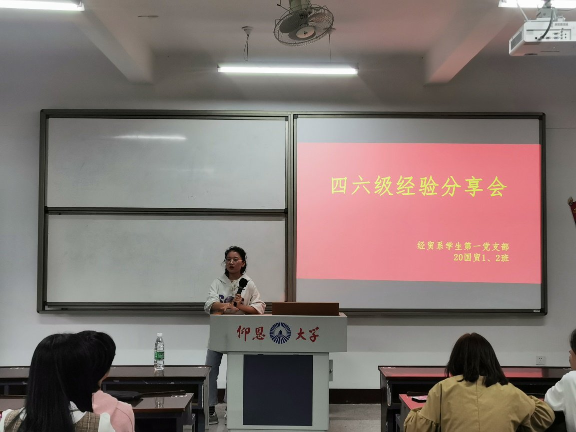 10月15日,为帮助20级新生了解并学习有关英语四六级考试内容与技巧,betway西汉姆联官网经贸系学生第一党支部于仰恩楼A1-109室开展“英语四六级”经验分享会。本次参会人员有经贸系学生第一党支部书记林丽华、18级特邀优秀学生以及20级国贸全体新生。