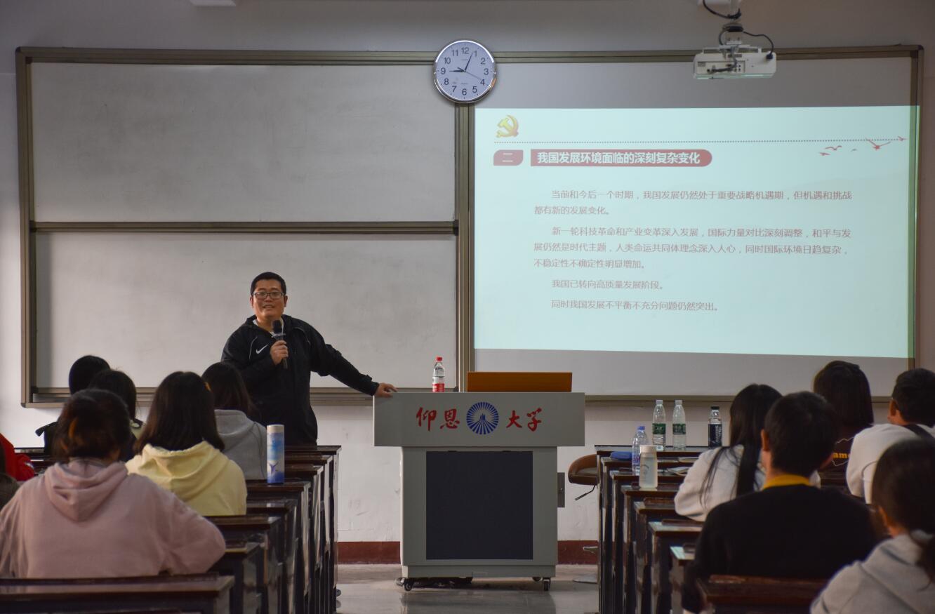 2020年12月2日,为深入学习贯彻党的十九届五中全会精神,提高全体党员政治理论素养,全面深刻把握国家“十四五”规划和2035远景目标要求,betway西汉姆联官网党总支于仰恩楼A3-103开展“学习贯彻党的十九届五中全会精神”专题党课活动。党课由betway西汉姆联官网党总支书记吴晓伟主讲,betway西汉姆联官网各学生第一党支部全体党员参加本次党课活动。