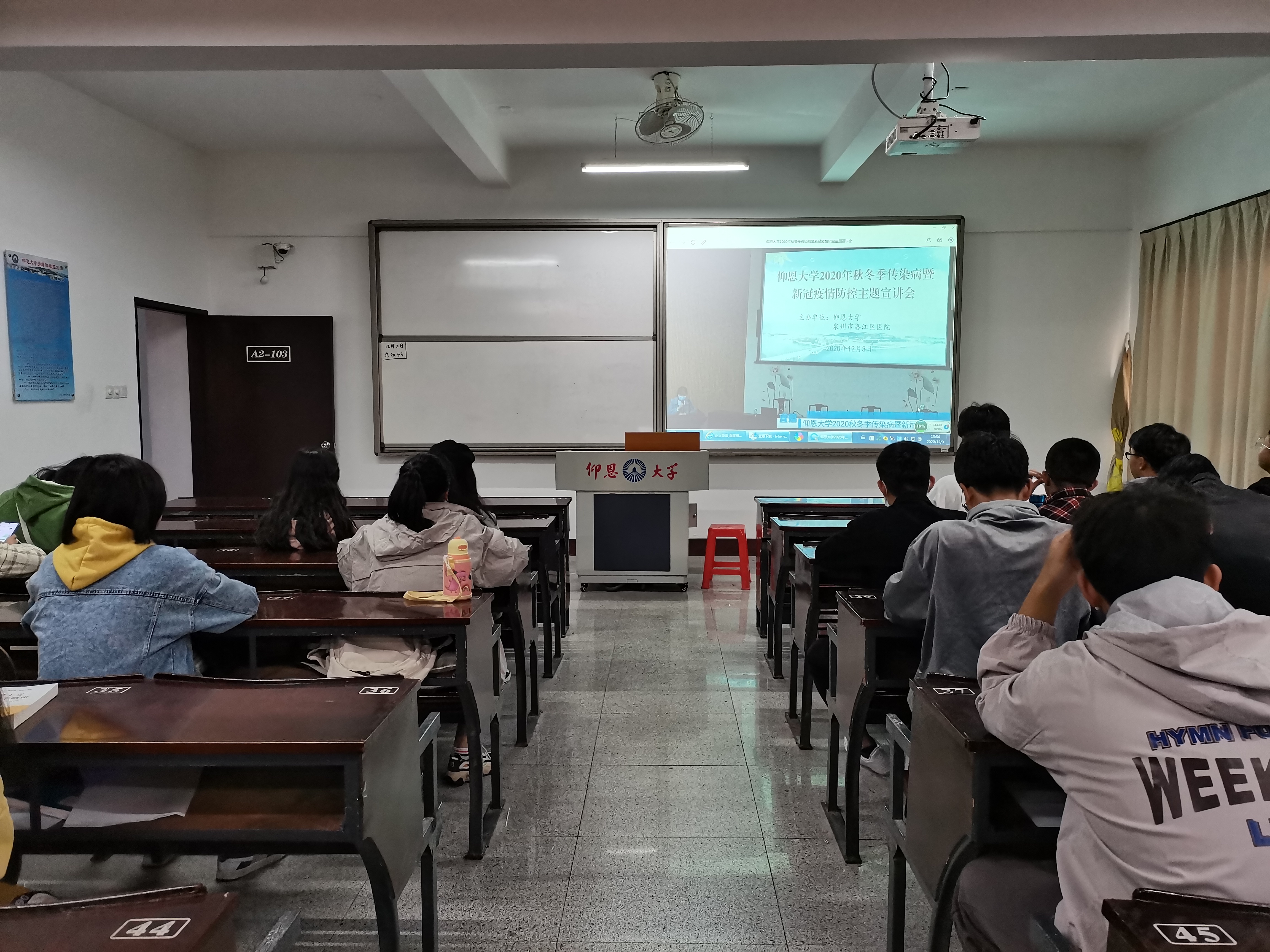 为了提高传染病预防水平,增强大学生传染病预防意识,2020年12月3日,由我校召开的“秋冬季传染病暨新冠疫情防控”主题班会于金融系、经济系、国际贸易与经济系各所在班级展开。本次班会由泉州市洛江区马甲镇医院医师主讲,参会人员为betway西汉姆联官网全体学生。