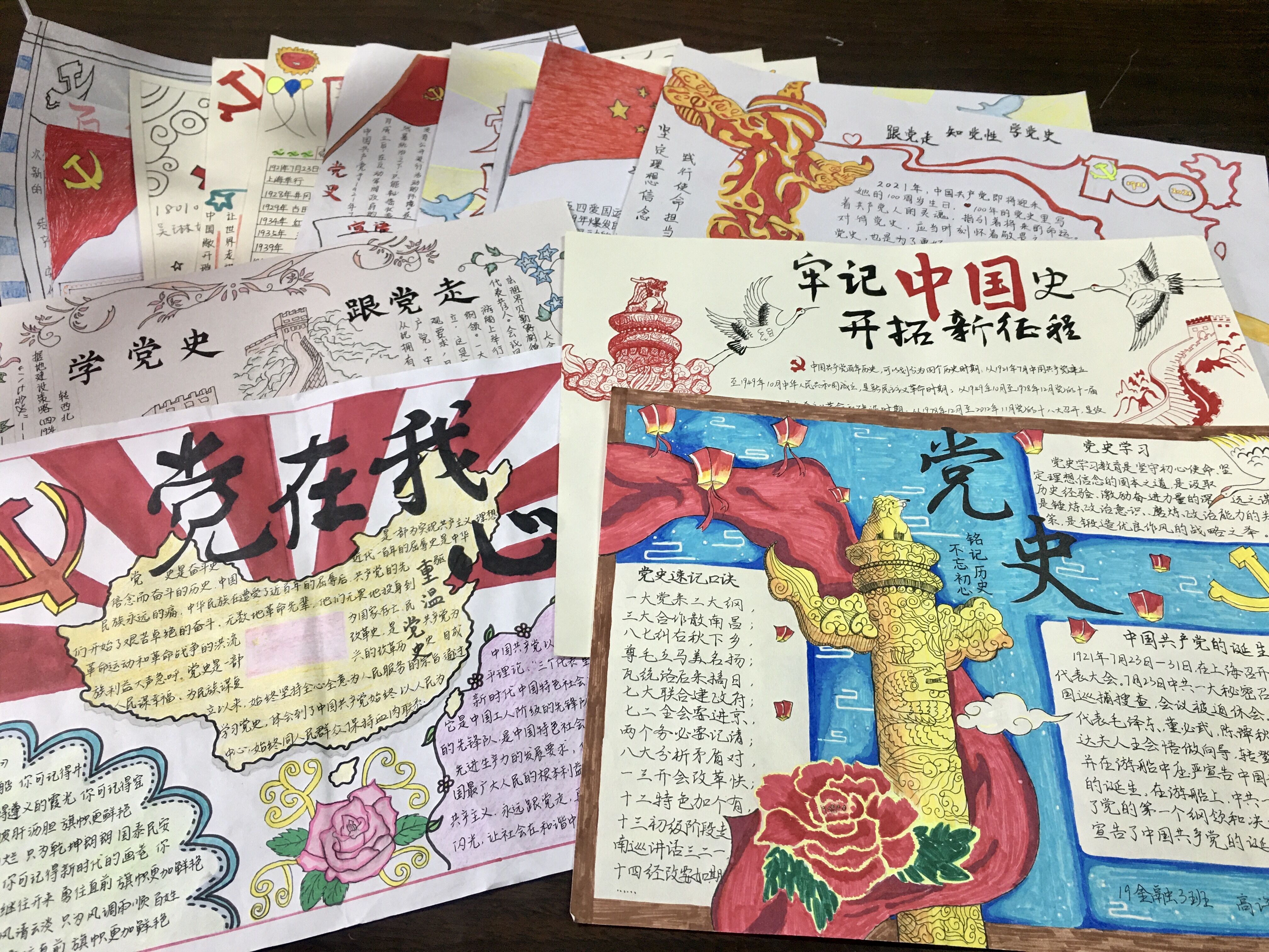 此次活动以班级为单位征集作品,历时15天,共征集到16幅手抄报作品。各参赛选手都充分发挥了自身的动手能力及创新能力,绘制出一幅幅别出心裁的党史主题手抄报。评委老师从是否切合主题、文字内容和构图整体性三个角度对参赛作品进行评选,共评出四幅获奖作品。其中,180103谷雨同学的作品“牢记党史,开拓新征程”获得第一名,190103高许婷同学的作品“党史”获得了第二名,180104缪晓霞同学的作品“学党史,跟党走”和190103张婷婷同学的作品“党在我心”分别获得第三名和第四名。