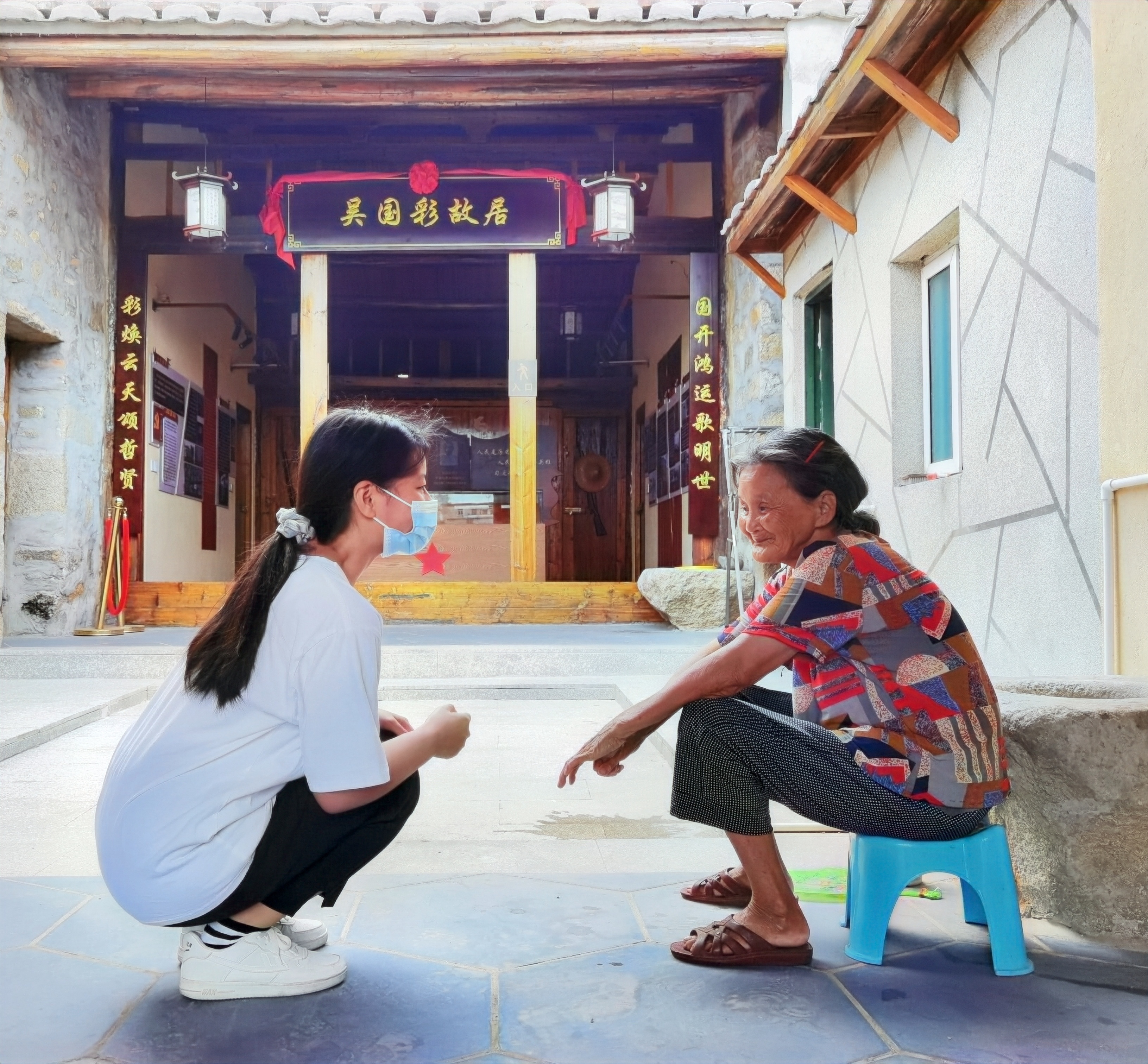 图2实践队员向村民了解国彩村的革命先烈事迹