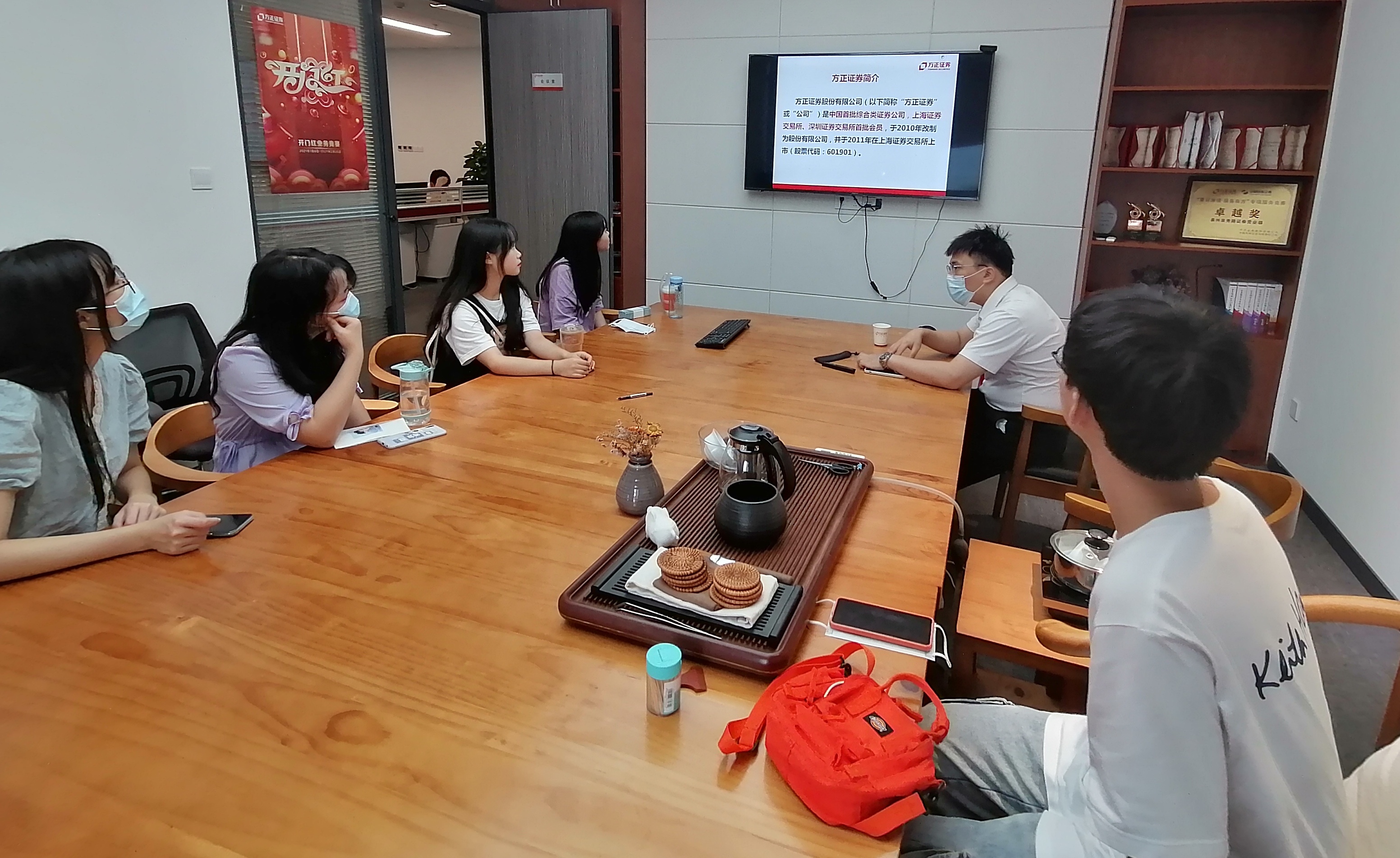 2021年8月11日betway西汉姆联官网胜券在握赴方正证券暑期实践队赴方正证券股份有限公司津淮街证券营业部学习了解方正证券的主营业务,继续分析股票细节并对打新股打新债进行延伸学习。