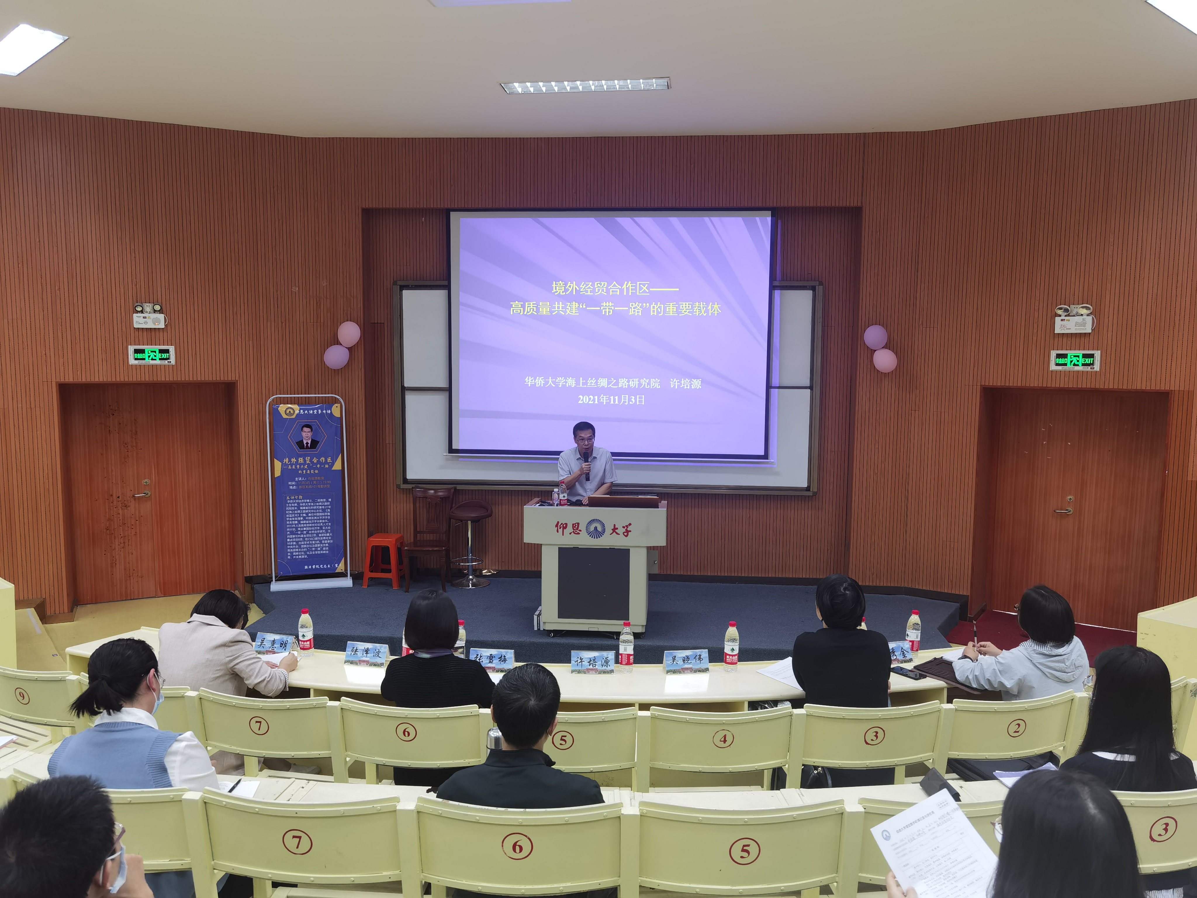 11月3日下午3点,华侨大学海上丝绸之路研究院院长、福建省社科研究基地•21世纪海上丝绸之路研究中心主任、《海丝蓝皮书》主编、华侨大学博士生导师许培源教授作客betway西汉姆联官网“仰恩大讲堂”,于新区合昌教学楼惟勤讲堂作题为“境外经贸合作区——高质量共建‘一带一路’的重要载体”的专题讲座。此次讲座由betway西汉姆联官网院长张雪梅教授主持,betway西汉姆联官网350余名师生参加此次讲座。