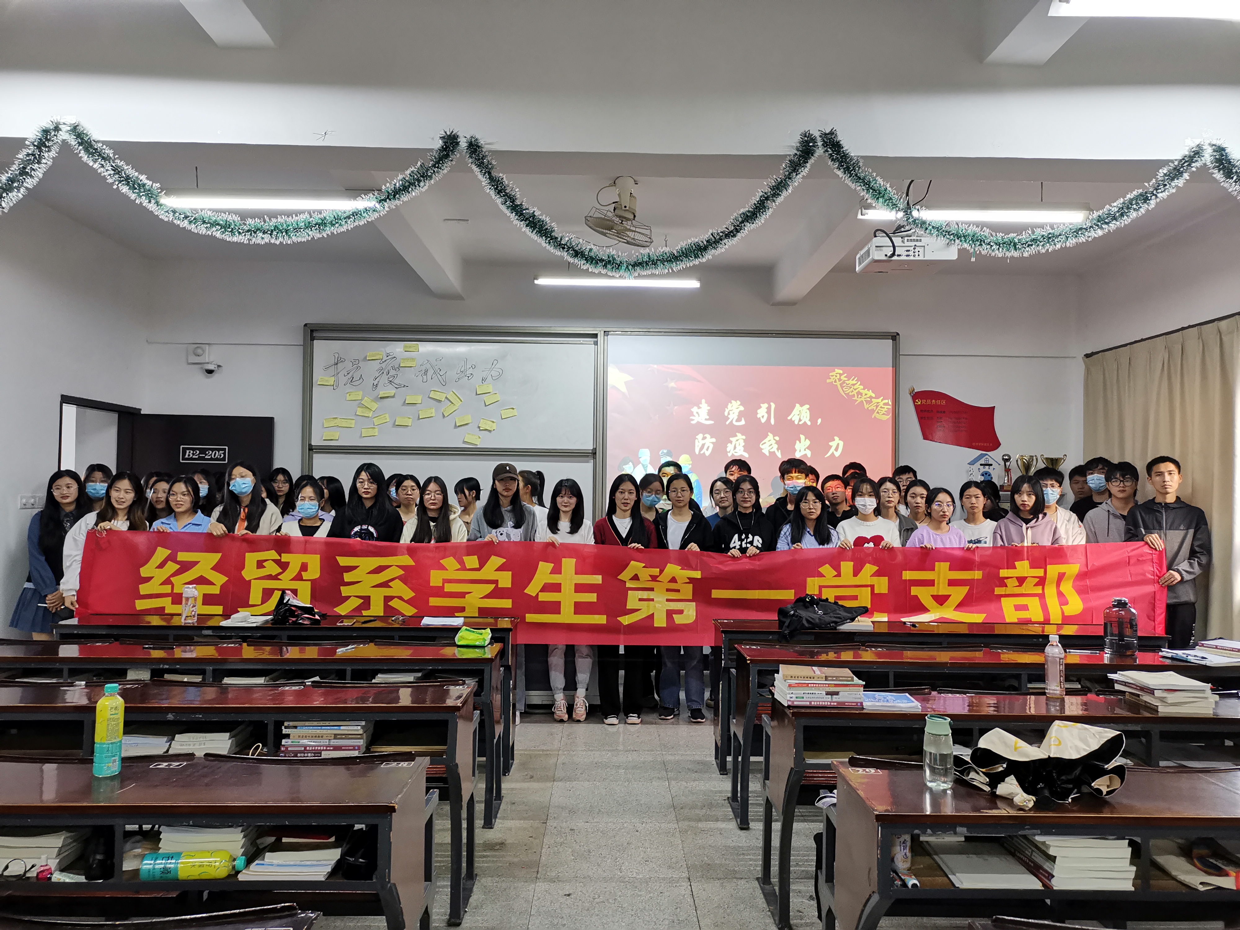 图3 经贸系学生第一党支部全体党员及积极分子合影 本次主题党日活动的顺利开展,让党员同志明白常态化新冠肺炎疫情防控工作的重要性,进一步提高自身政治站位,切切实实的把思想和行动统一到重要指示精神上,时时刻刻以党员的身份要求自己,向先进党员学习,努力成为一名合格的共产党员。(经贸系学生第一党支部/图文 审核:黄培真)
