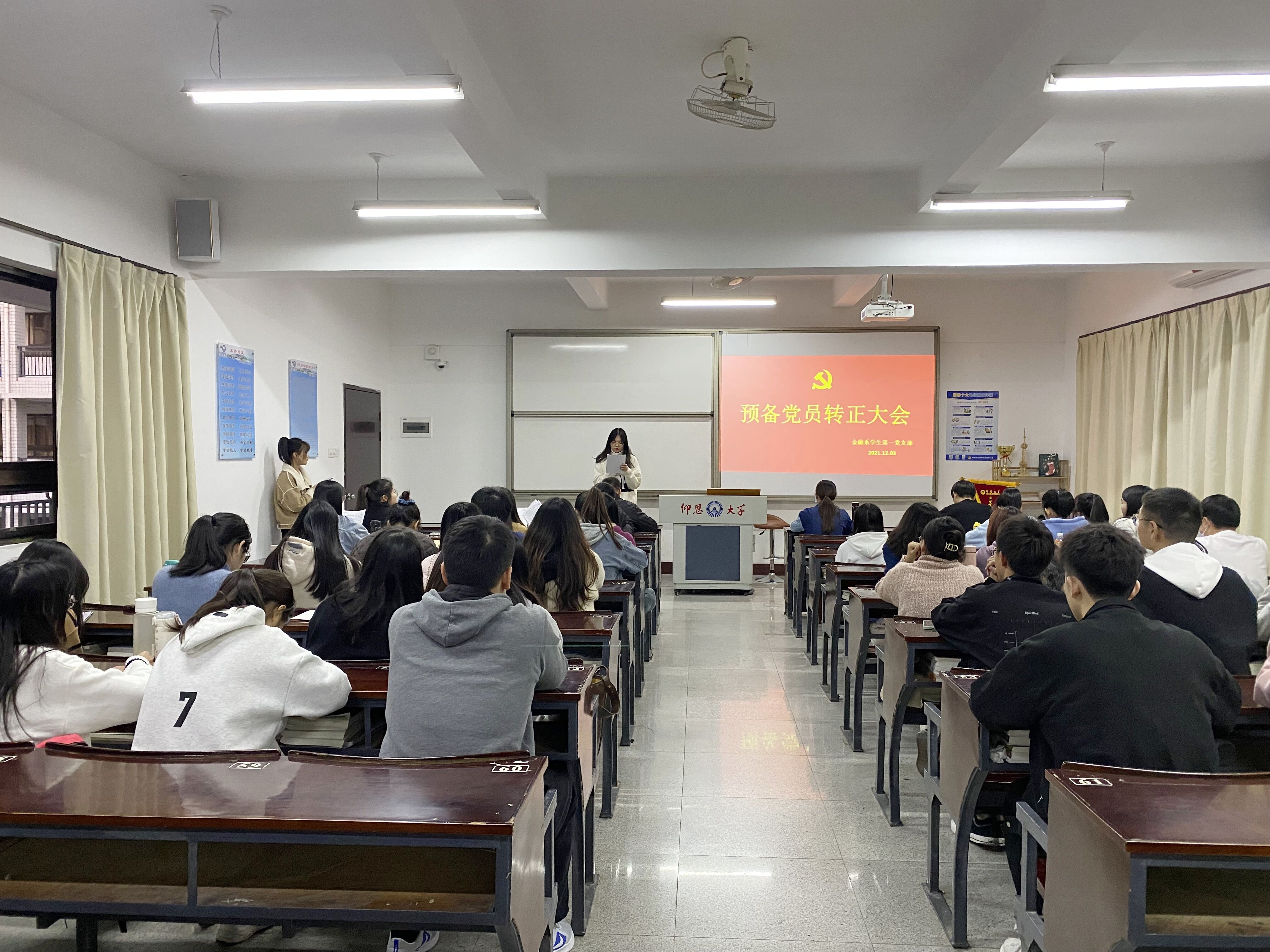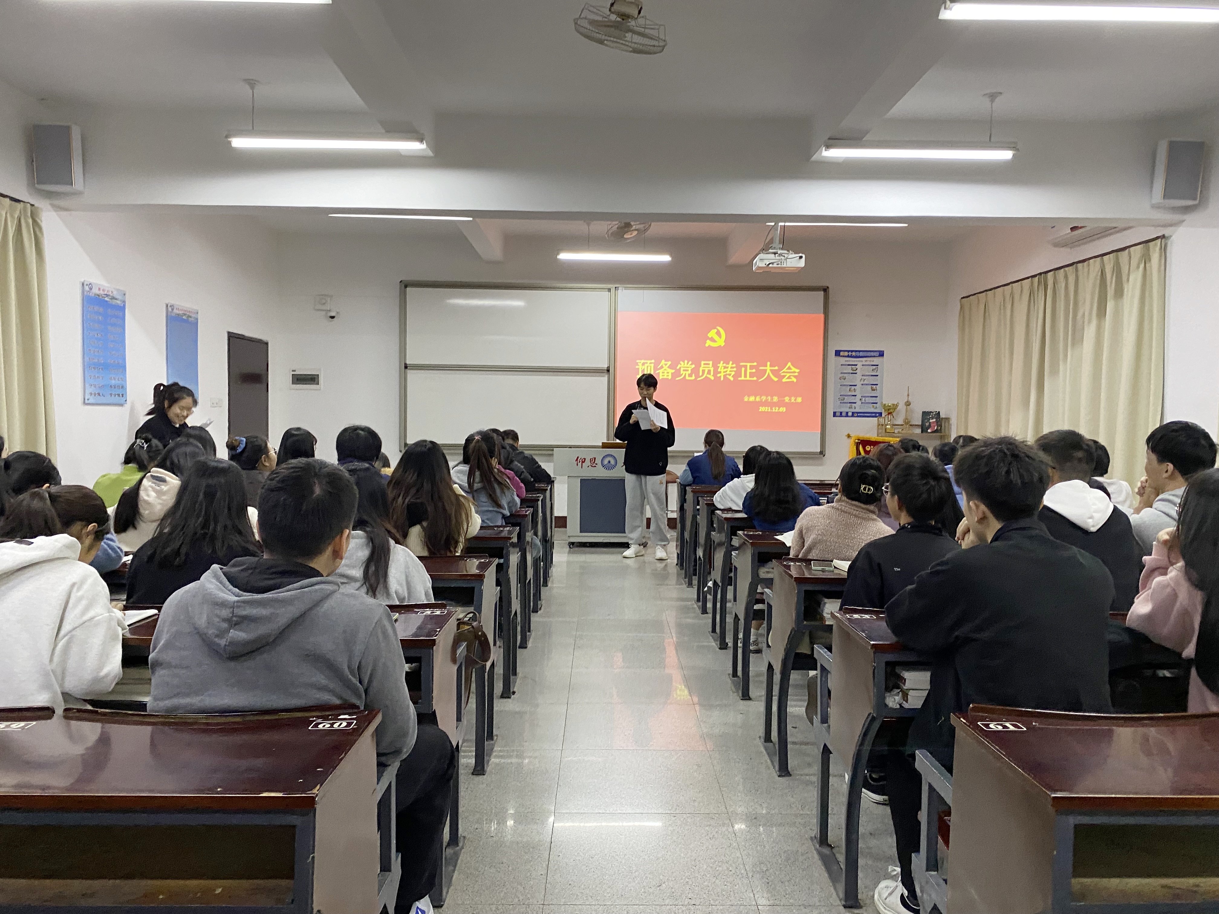2021年12月3日下午5:10,betway西汉姆联官网金融系学生第一党支部于仰恩楼教室B5-203召开预备党员转正大会。此次大会的参与人员有三位支委老师,支部书记何丽玲老师、组织委员谢坤宏老师和宣传委员詹奕椿老师,支部全体17名预备党员和发展对象,包括即将转正的3名预备党员。