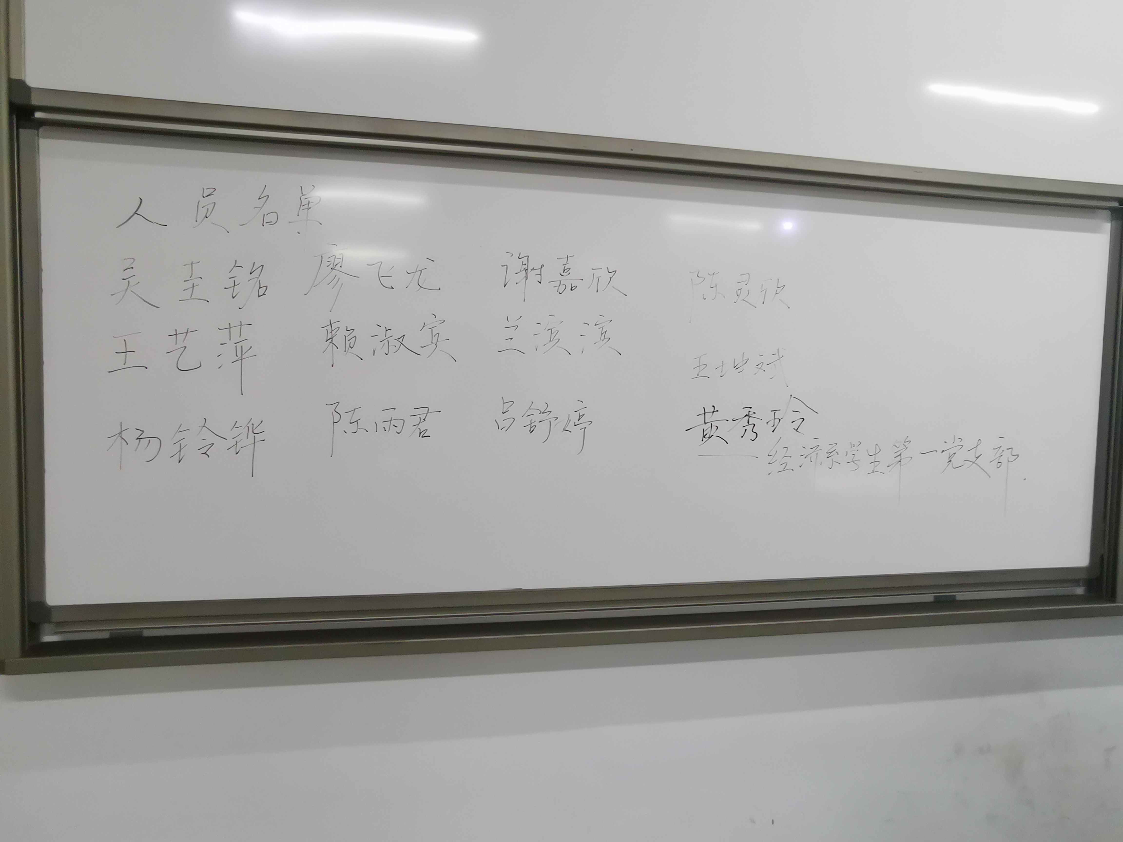 图1 经济系学生第一党支部全体党员参会现场 此次预备党员接收大会,应到党员13,实到党员13人;应到会正式党员4人,实到会正式党员4人。