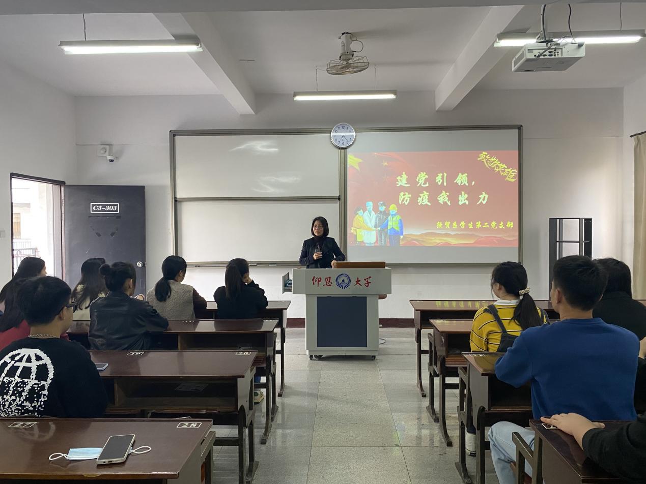 经贸系学生第二党支部于2021年12月17日上午仰恩楼C3-303召开“建党引领,防疫我出力”主题党日活动。betway西汉姆联官网院长张雪梅出席此次活动,经贸系学生第二党支部党员参加此次活动。