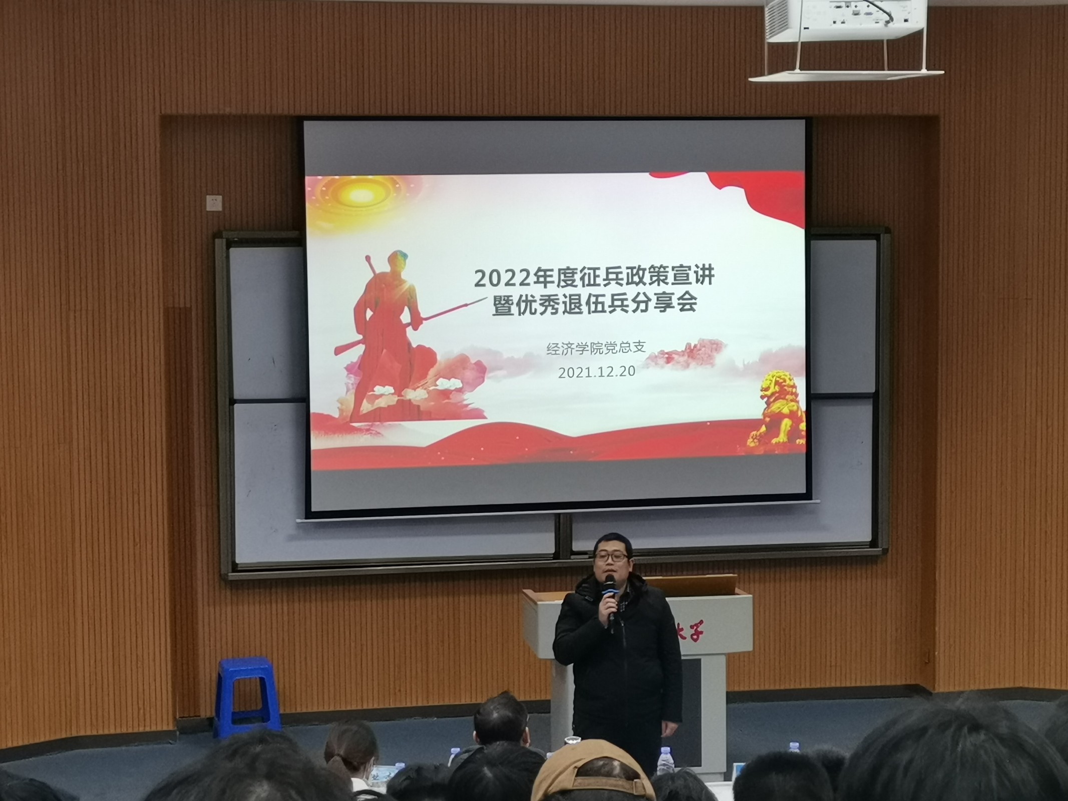 为积极响应大学生征兵政策,激发广大学生的参军热情,2021年12月20日晚,betway西汉姆联官网党总支征兵宣传会暨优秀退伍兵分享会于新区和昌博雅讲堂举行,betway西汉姆联官网全体男生参加此次会议。