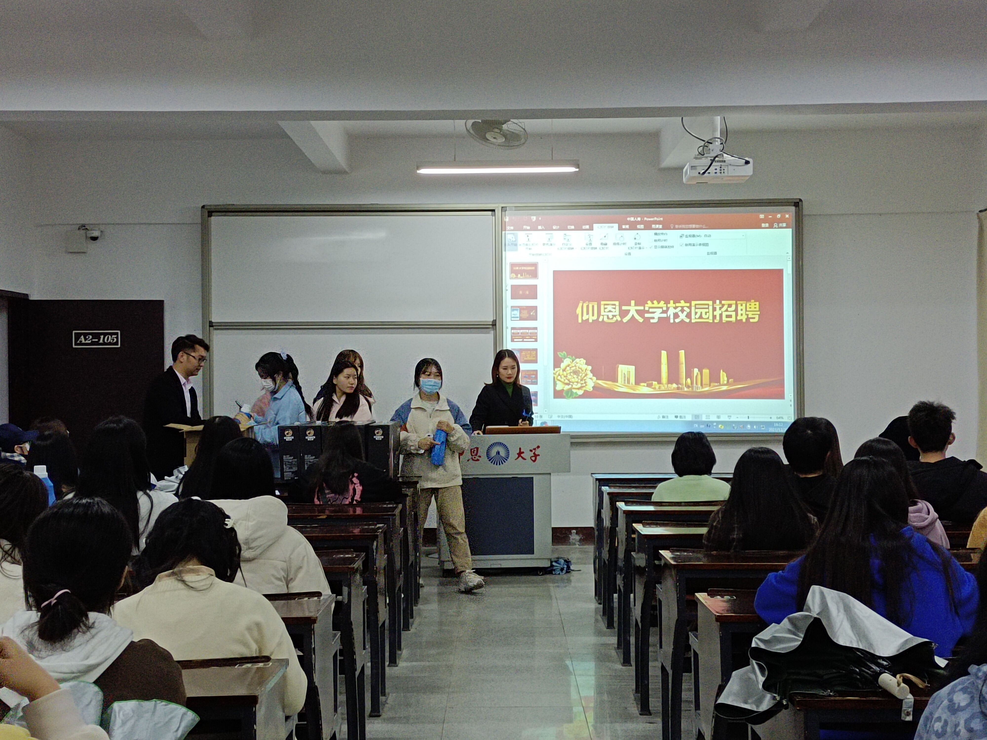 为了更好地拓宽毕业生的就业渠道,缓解高校毕业生的严峻就业形势。由betway西汉姆联官网主办,betway西汉姆联官网职业发展中心协办的中国人寿晋江市支公司宣讲会于2021年12月23日下午四点在仰恩楼A2-105成功举办。参加本次宣讲会的有中国人寿晋江市支公司负责人和betway西汉姆联官网全体学生。
