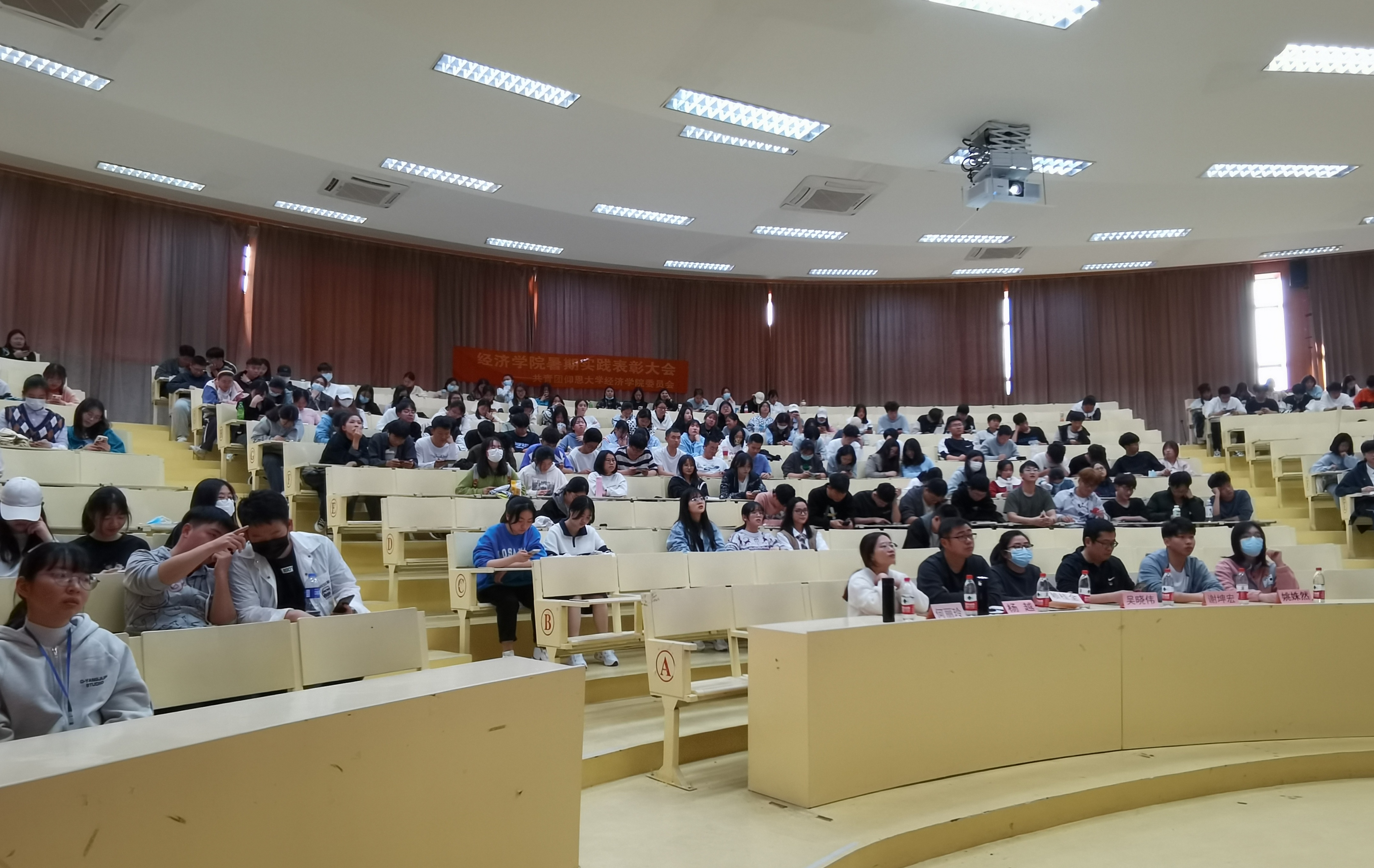 图1 大会开展情况 大会开始,首先由主持人向大家详细介绍了本次表彰大会的流程。活动过程中,各参会队伍依次上台展示本队的实践目的及实践成果等内容。六支代表队伍在暑期实践的过程中,不喊累,不怕苦,勇敢直面各种挑战,全面展现了经院学子积极向上的精神风貌。活动最后,吴晓伟老师对本次暑期实践表彰大会做出总结,同时也对各个参赛队伍的努力表示肯定,并激励与会的经院新生向学姐学长们学习,并相互探讨交流。