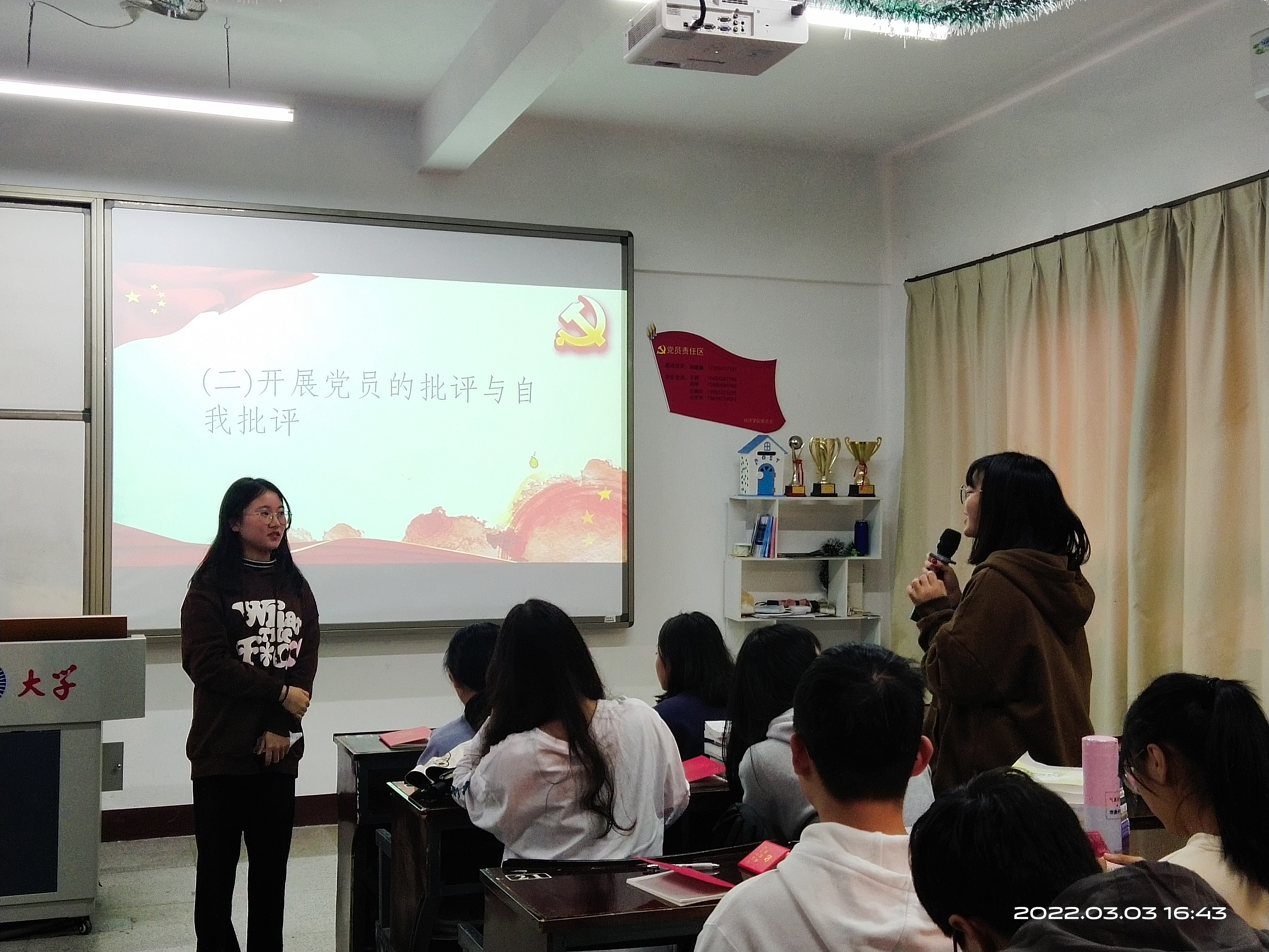 为牢固树立共产主义的理想信念,树立全心全意为人民服务的宗旨观念,自觉成为党的群众路线教育的拥护者和实践者。betway西汉姆联官网各学生支部于2022年3月初有序开展组织生活会,针对2021年支部工作开展情况积极总结经验、分析不足,促进党员同志的交流沟通,真正做到敢于自我检查、批评与自我批评。