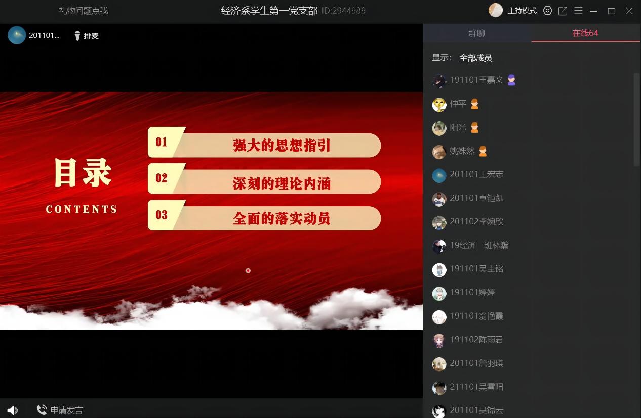 为进一步普及和全面落实“两会”精神,2022年3月24日晚上,betway西汉姆联官网经济系学生第一党支部开展“学习两会精神”线上学习交流会。本次主讲人为王宏志干事,参会人员为经济系学生第一党支部书记赖桂全老师、副书记姚姝然老师、组织委员仲平老师、宣传委员杨越老师以及支部全体成员。