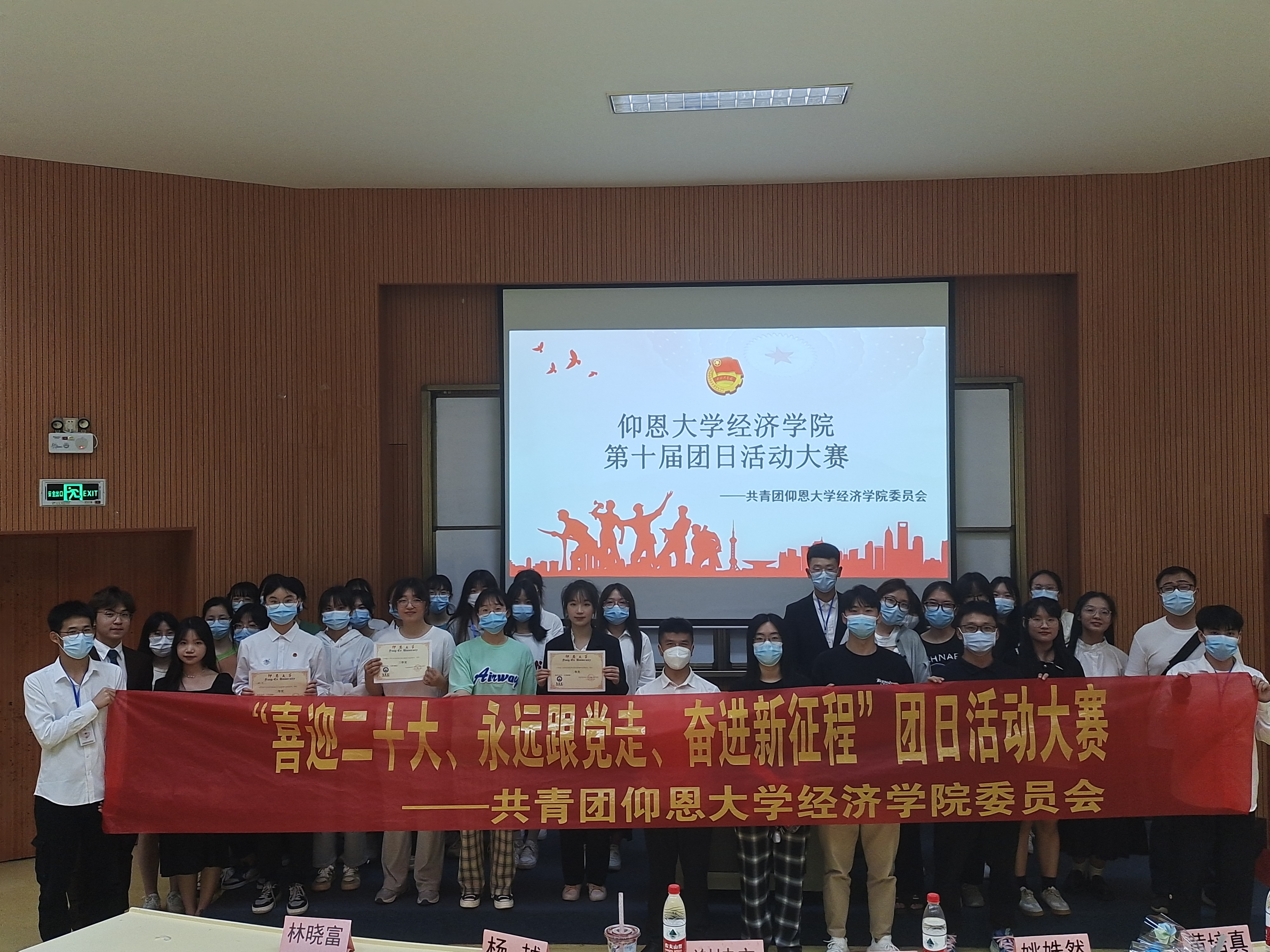 图2 获奖同学与在场老师合影 “喜迎二十大,永远跟党走,奋进新征程”,通过此次主题团日活动,betway西汉姆联官网学子在活动中重温党团百年奋斗历程,在活动中凝聚班级力量,展现出了经院学子的良好精神风貌。(betway西汉姆联官网团委/图文 审核:黄培真)