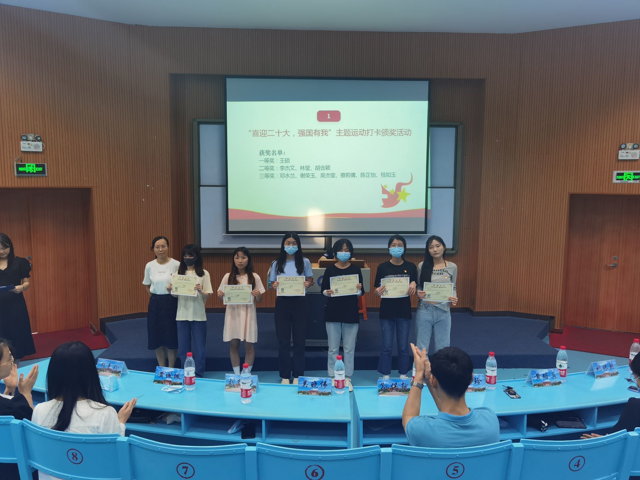 图2 betway西汉姆联官网党总支对参与活动学生进行表彰 值此“七一”前夕,为延续并营造运动氛围,鼓励经院学子坚持锻炼,betway西汉姆联官网党总支于2022年6月28日下午于海纳讲堂举办了“喜迎二十大,强国有我”主题运动打卡活动表彰大会,对积极并坚持参与此次运动打卡活动的经院学子进行表彰。