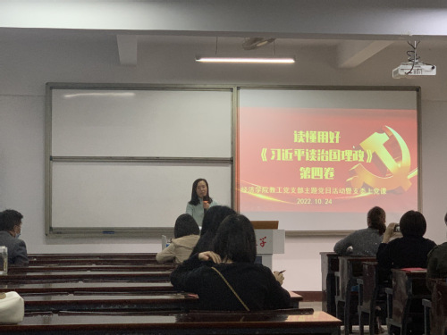 2022年10月21日下午2点20分,betway西汉姆联官网教工支部在新区仰恩楼A1-105开展党日活动。在主持人杨娣同志的引导下,刘红艳同志带领大家学习了《习近平谈治国理政》第四卷。