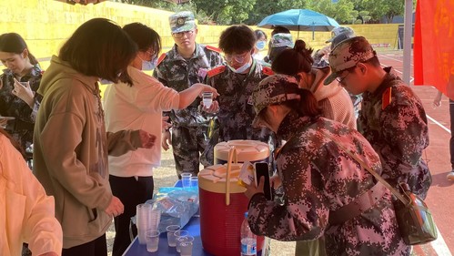 活动前期,betway西汉姆联官网团委在操场主席台右侧设立了温暖站。早早的提前迎接拉练结束的小萌新们,在服务活动期间,值班干部贴心地为拉练结束的新生们准备了暖茶和小零食,并及时补充,保障供给。为新生们缓解了劳累一早上的饥饿交迫之感。同时干部们积极慰问的热情不仅拂去了新生的疲惫,更展现出我院学生干部的风采。
