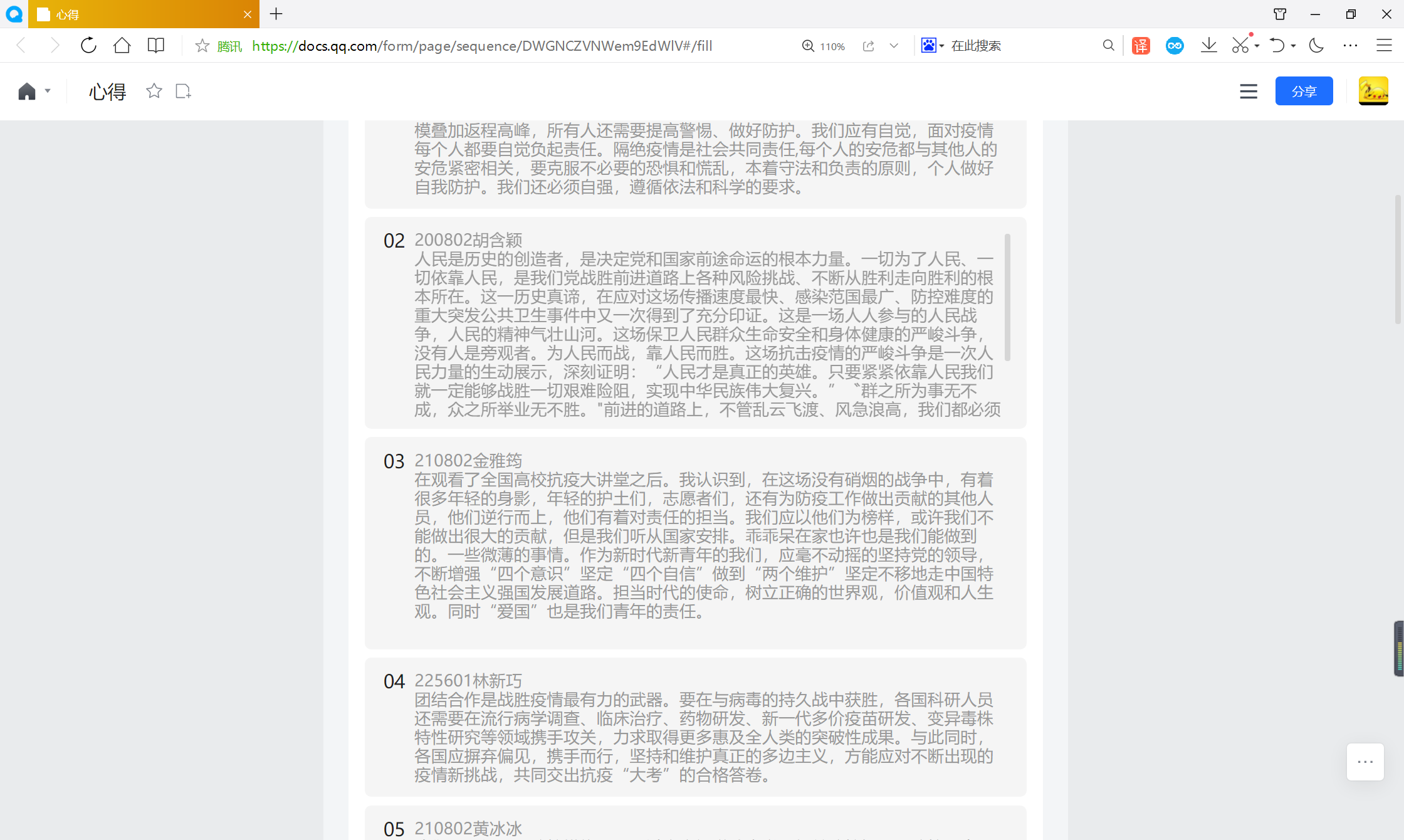 课后,我院教工支部各位同志也都纷纷发言讨论,都表明要以更严格的标准要求自己。做好科学防疫工作,不给党不给国家添麻烦。党员干部要做好疫情防控的宣传,让更多人对“打疫苗”有科学的认识,自觉打“第一针、第二针、第三针”,构筑起健康免疫系统。疫情防控,人人有责,精准高效做好疫情防控工作,离不开全体成员的共同参与,每个人都应当本着为社会、为自己、为家庭负责的态度,积极落实好各项防控措施,当好自身疫情防控“第一责任人”,通过每个人的努力,凝聚成群防群控的强大力量。(betway西汉姆联官网党总支 黄培真/图文)