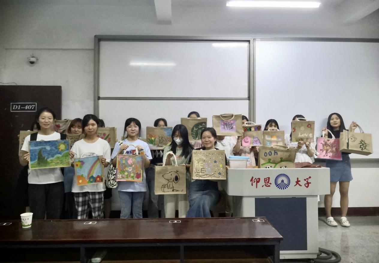 为倡导绿色低碳环保理念,引导广大同学积极投入到绿色环保的行列中,激发同学们的想象力和创造力,增强实际动手能力,2023年4月17日晚上7:00,金融系学生第一党支部党员楼委服务团与贵州楼楼委会在仰恩楼四楼活动室联合开展“妙手生花,‘袋’爱回家”环保袋DIY主题活动。此次活动面向金融系学生第一党支部全体同学和贵州楼宿舍同学。