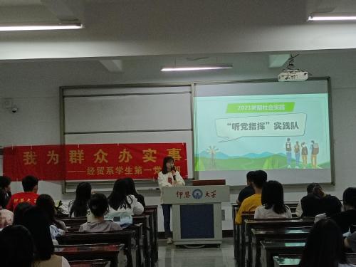为切实发挥党员先锋模范作用,积极推进我院2023年暑期实践前期准备工作地落实推进,深化22级学生对暑期实践的进一步了解。2023年5月12日下午,面向经贸系22级全体学生,经贸系学生第一党支部在仰恩楼B1-209开展了“我为群众办实事——暑期实践经验分享会”活动。出席此次活动的有经贸系学生第一党支部书记黄培真、组织委员林烽,以及往届校级优秀团队代表、先进个人代表。