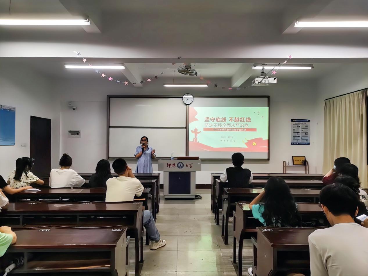 为切实学习好、宣传好、贯彻好党的二十大精神,筑牢拒腐防变的思想防线,营造风清气正政治环境,2023年6月14日,betway西汉姆联官网经济系学生第一党支部在新区仰恩楼B2-201组织开展了以“坚守底线,不越红线,坚定不移全面从严治党”2023年党风廉政教育专题党课。经济系学生第一党支部全体党员、积极分子参与本次党课。